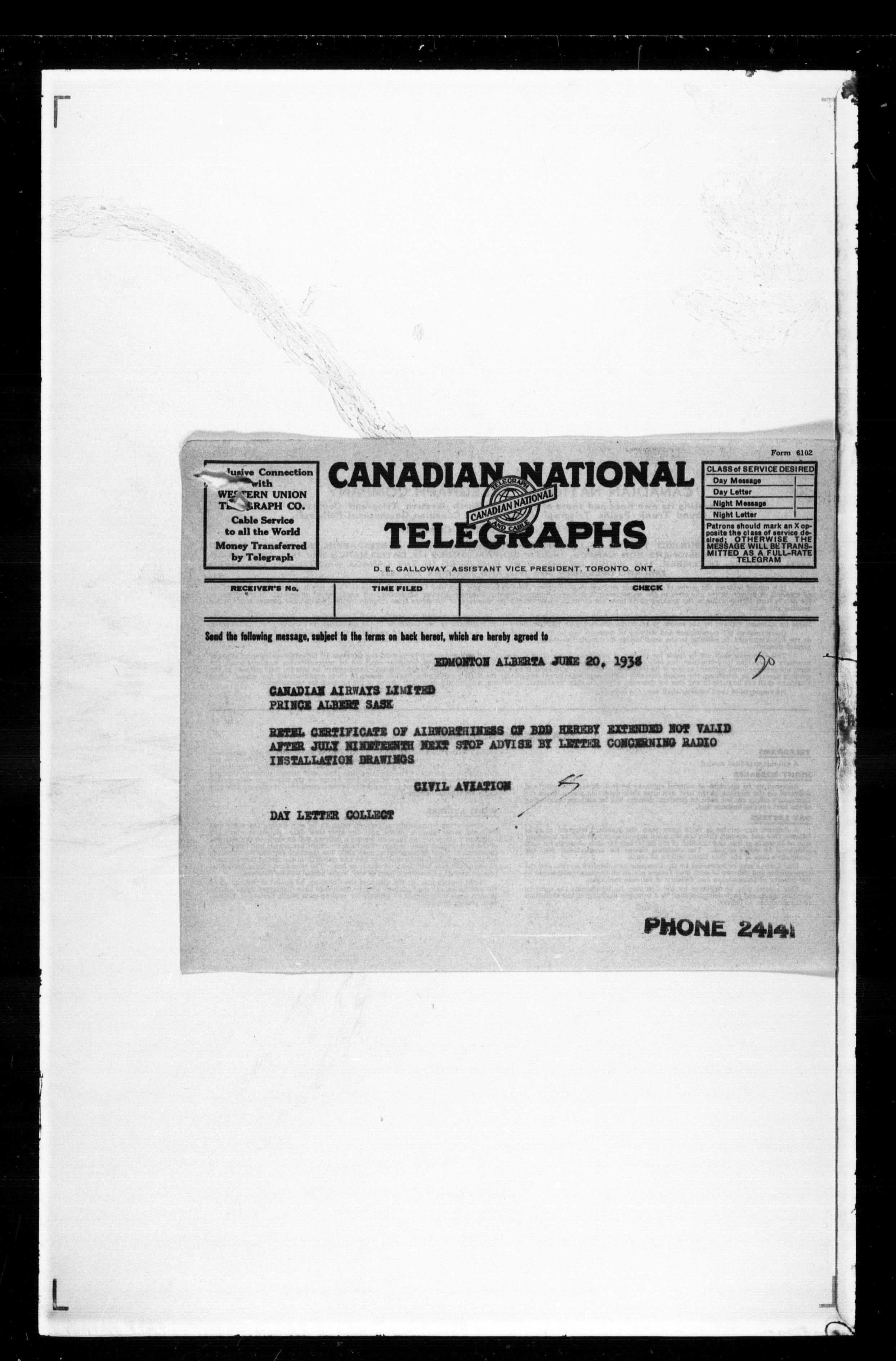 Department of Transport : Civil aircraft registration, inspection and operation files, block 5008, 1920-1986 - 7452