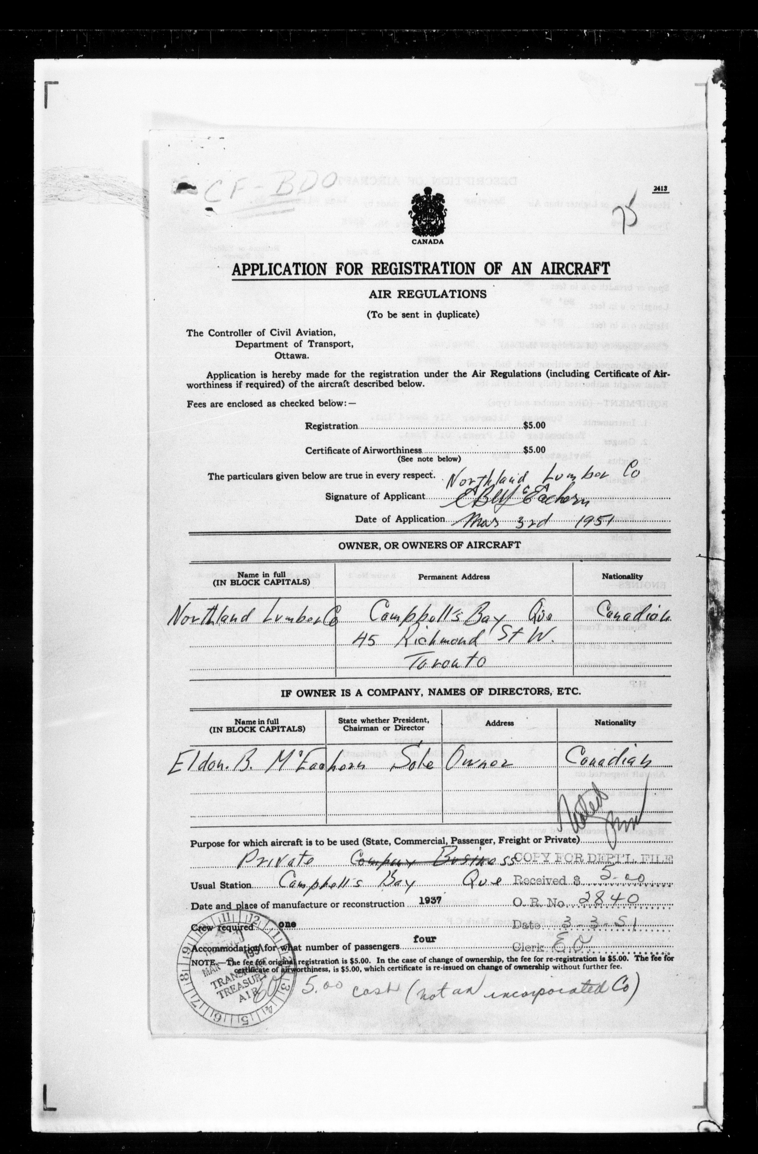 Department of Transport : Civil aircraft registration, inspection and operation files, block 5008, 1920-1986 - 7453