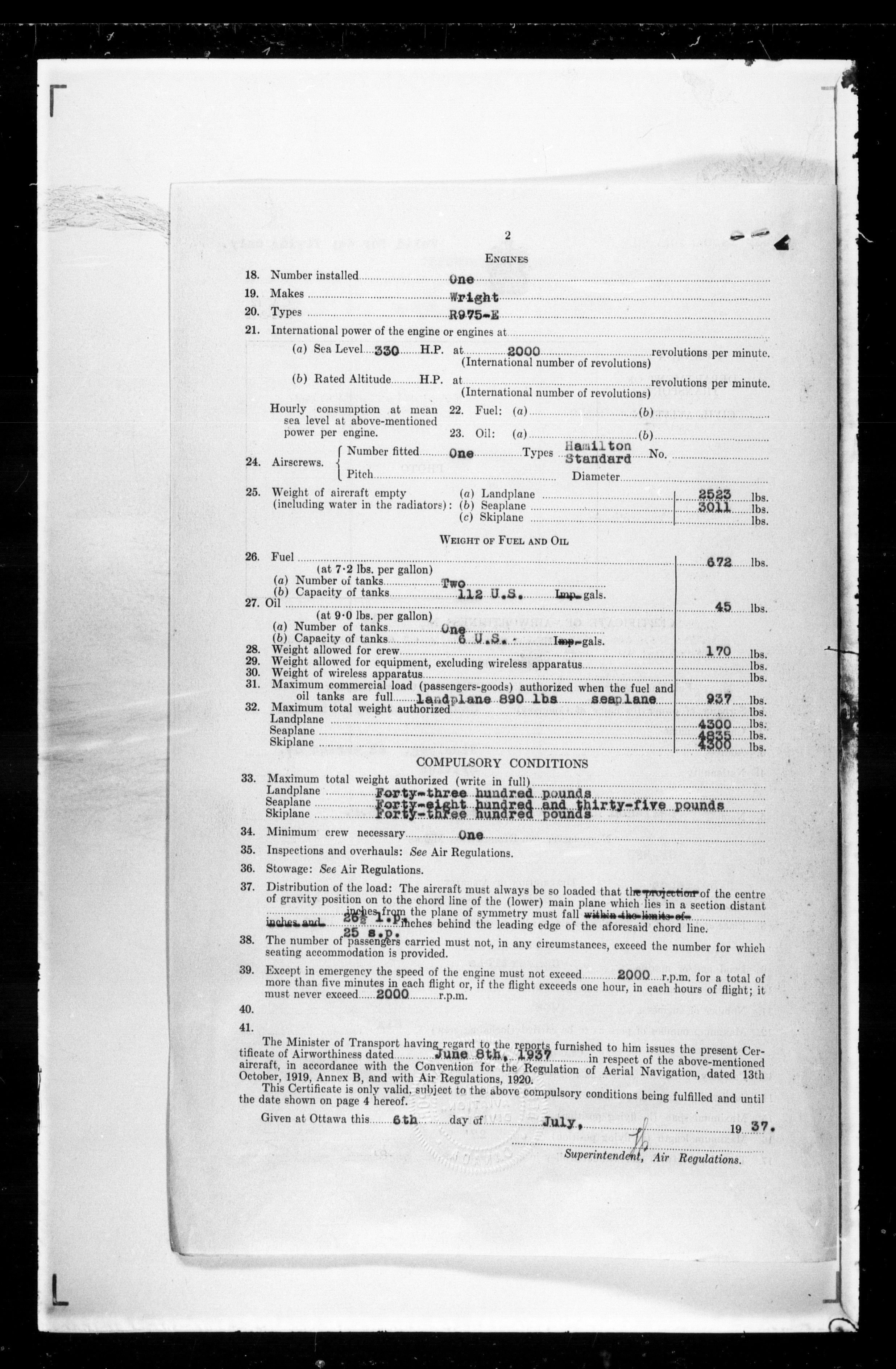 Department of Transport : Civil aircraft registration, inspection and operation files, block 5008, 1920-1986 - 7454