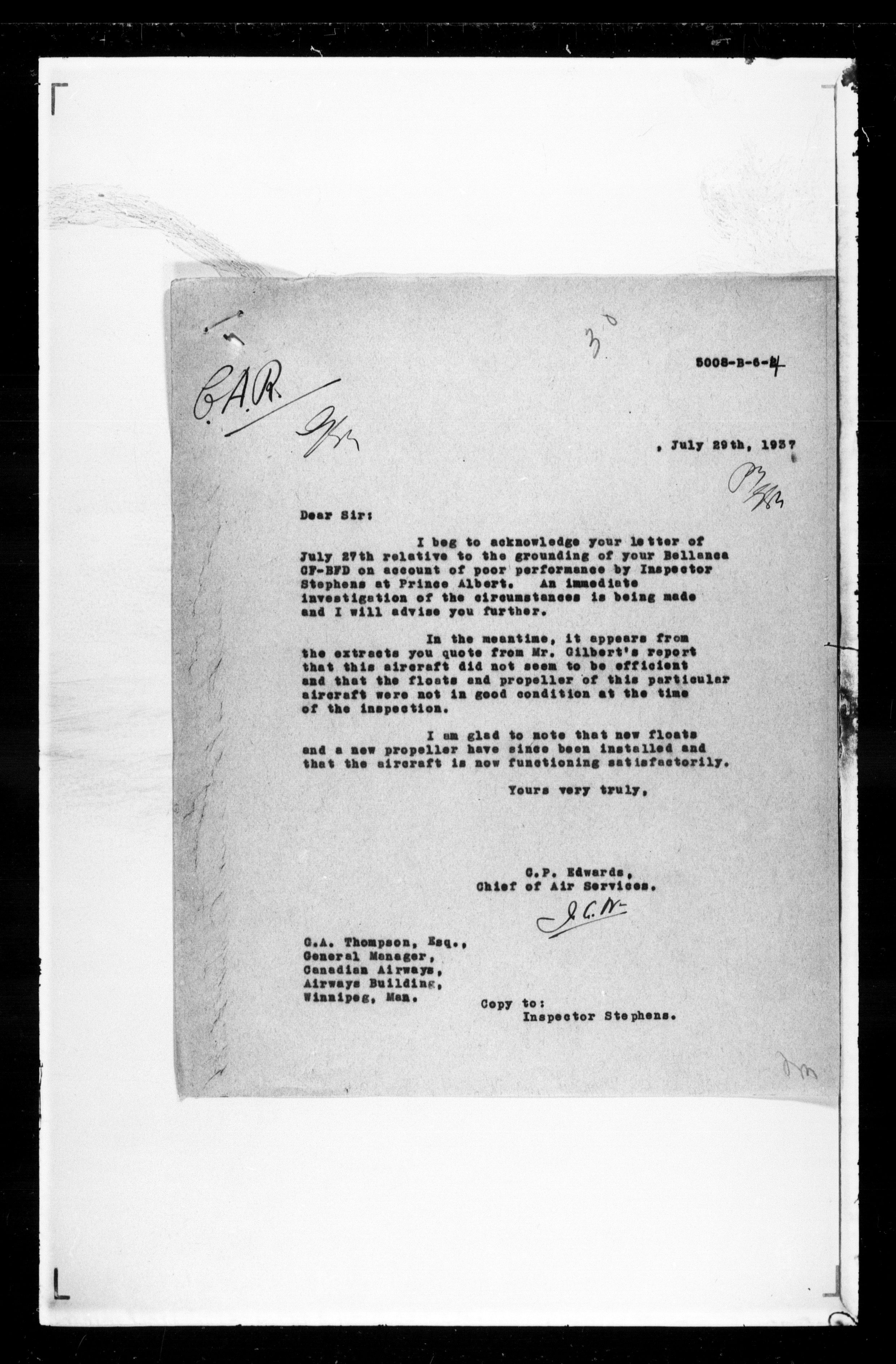 Department of Transport : Civil aircraft registration, inspection and operation files, block 5008, 1920-1986 - 7454