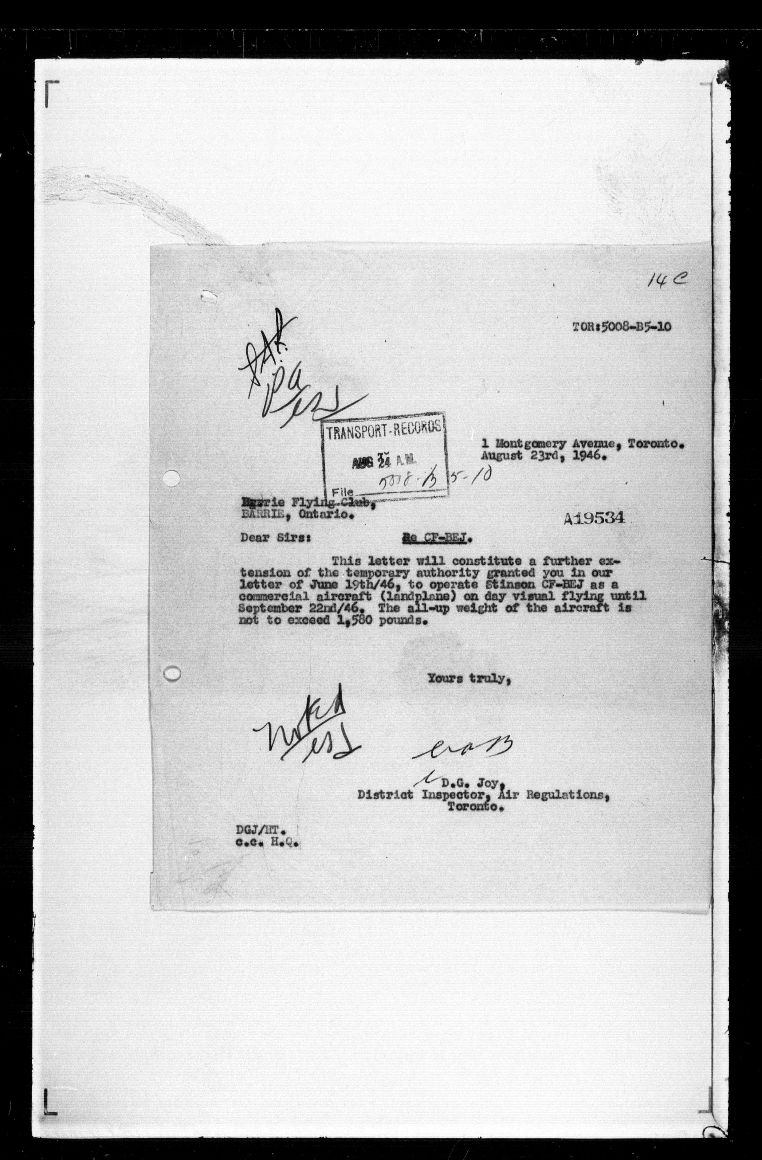 Department of Transport : Civil aircraft registration, inspection and operation files, block 5008, 1920-1986 - 7454