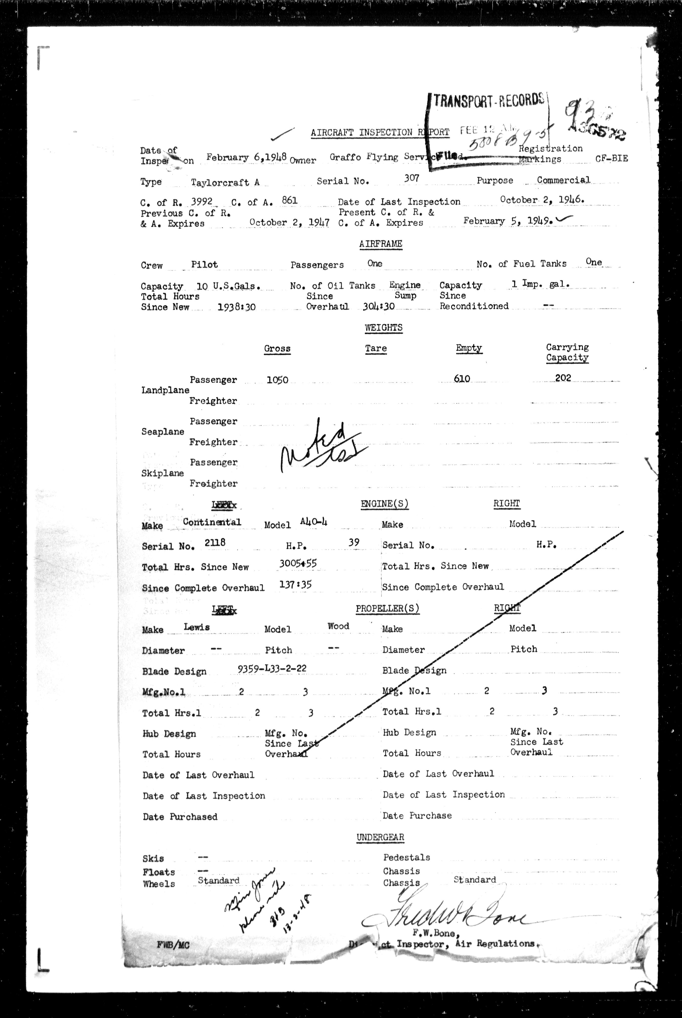 Department of Transport : Civil aircraft registration, inspection and operation files, block 5008, 1920-1986 - 7457