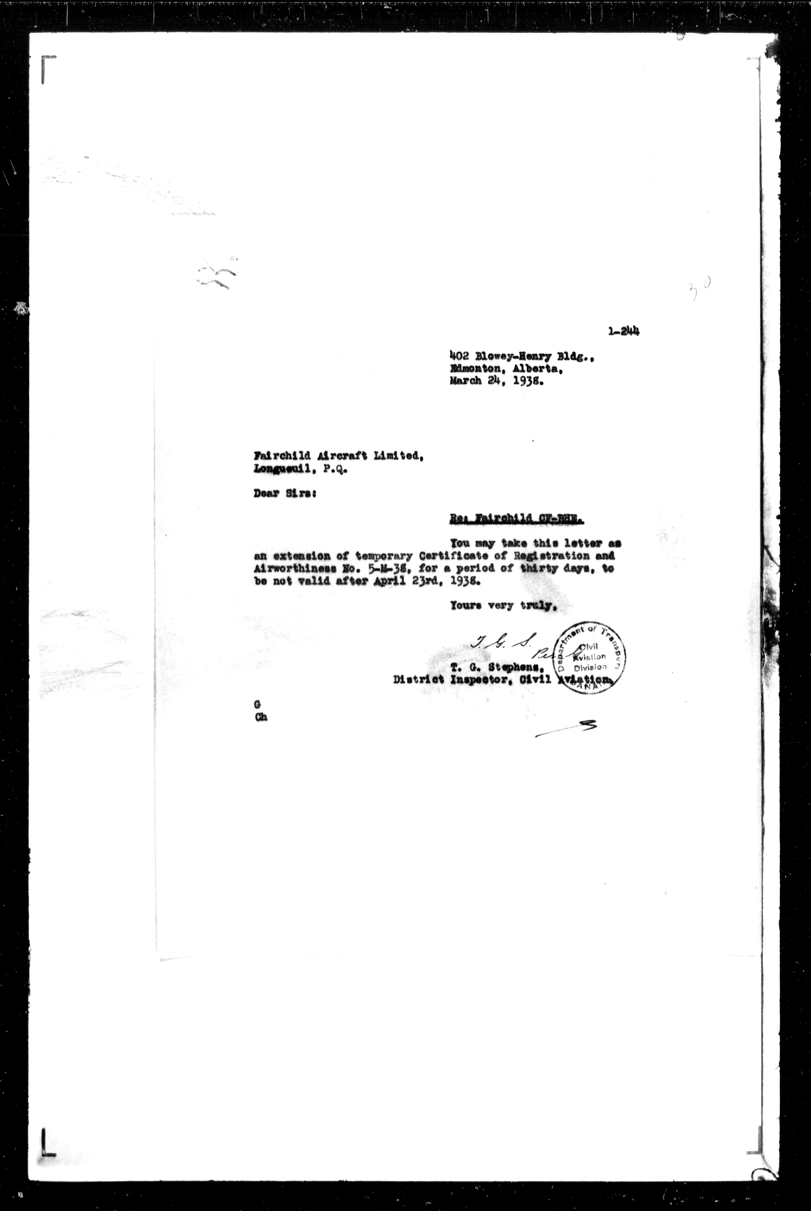 Department of Transport : Civil aircraft registration, inspection and operation files, block 5008, 1920-1986 - 7457