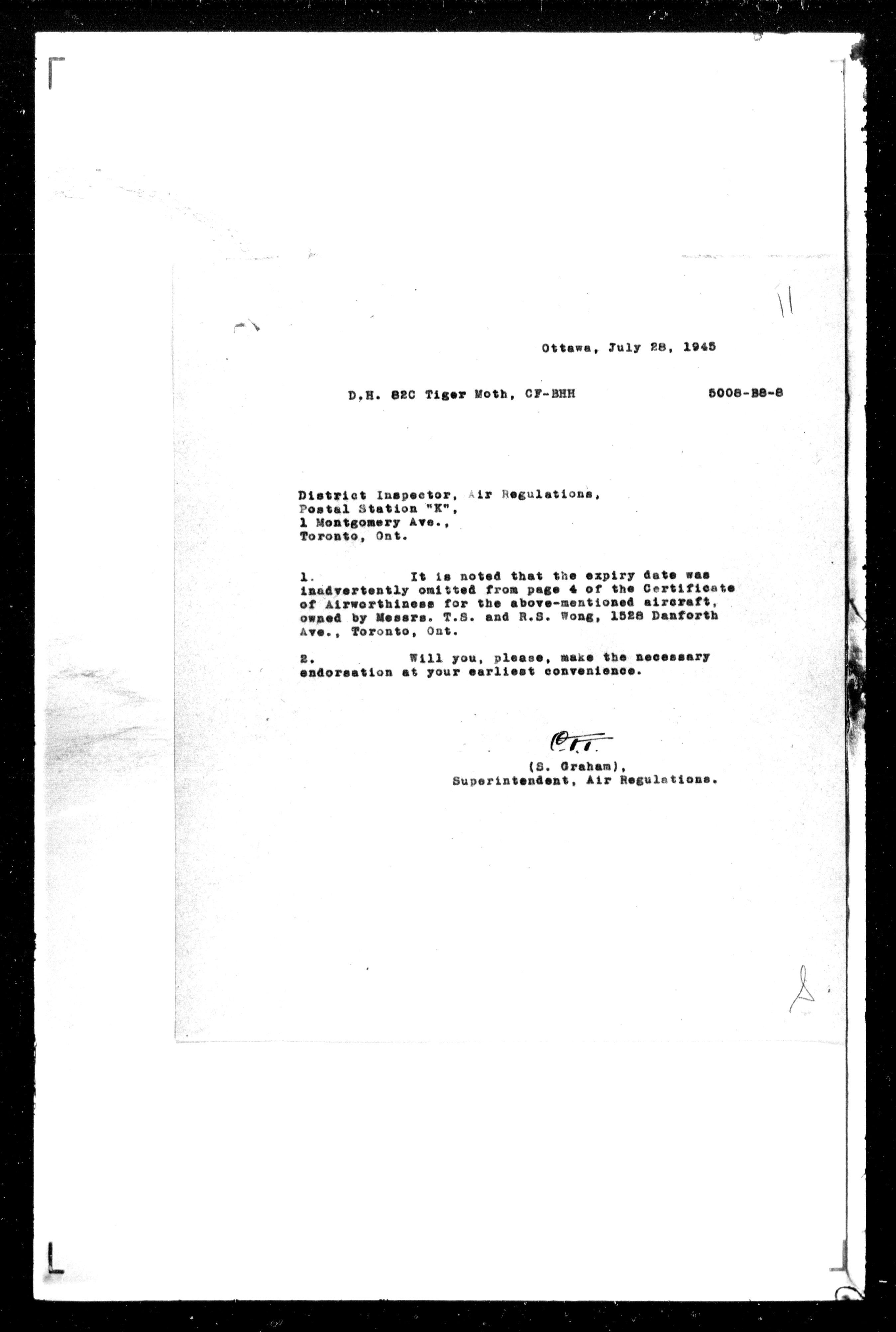 Department of Transport : Civil aircraft registration, inspection and operation files, block 5008, 1920-1986 - 7457