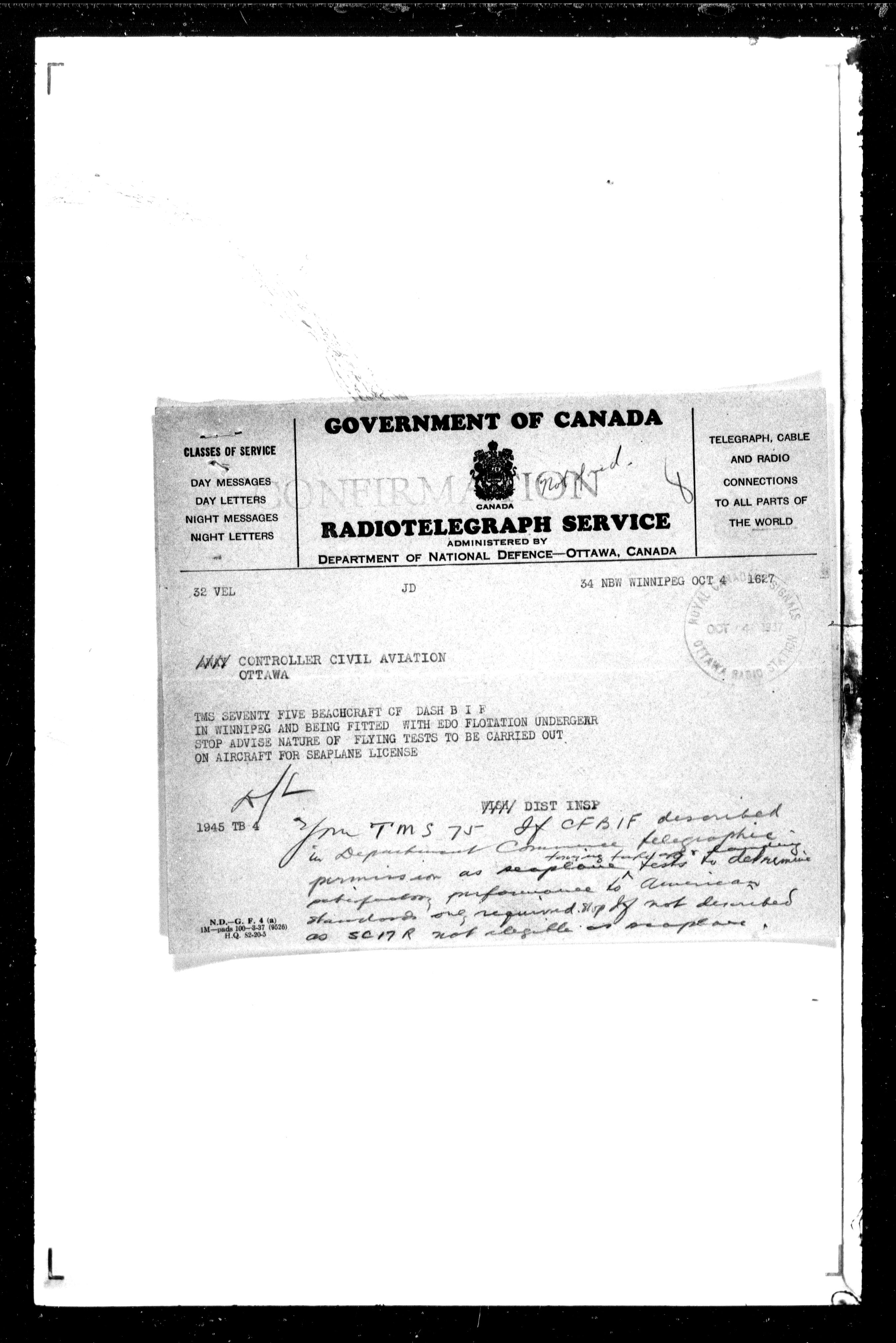 Department of Transport : Civil aircraft registration, inspection and operation files, 1920-1986 : T-7458