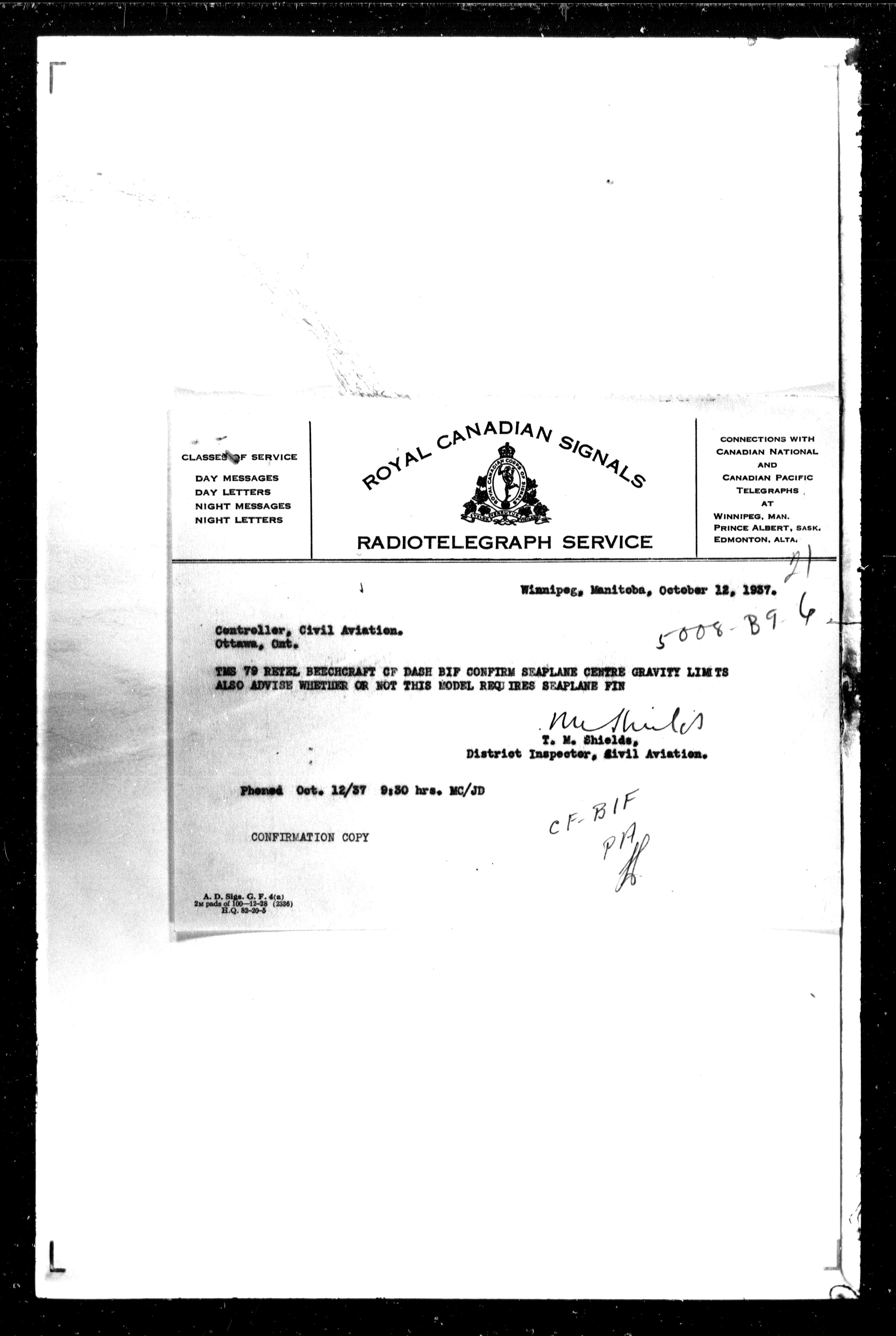 Department of Transport : Civil aircraft registration, inspection and operation files, block 5008, 1920-1986 - 7458