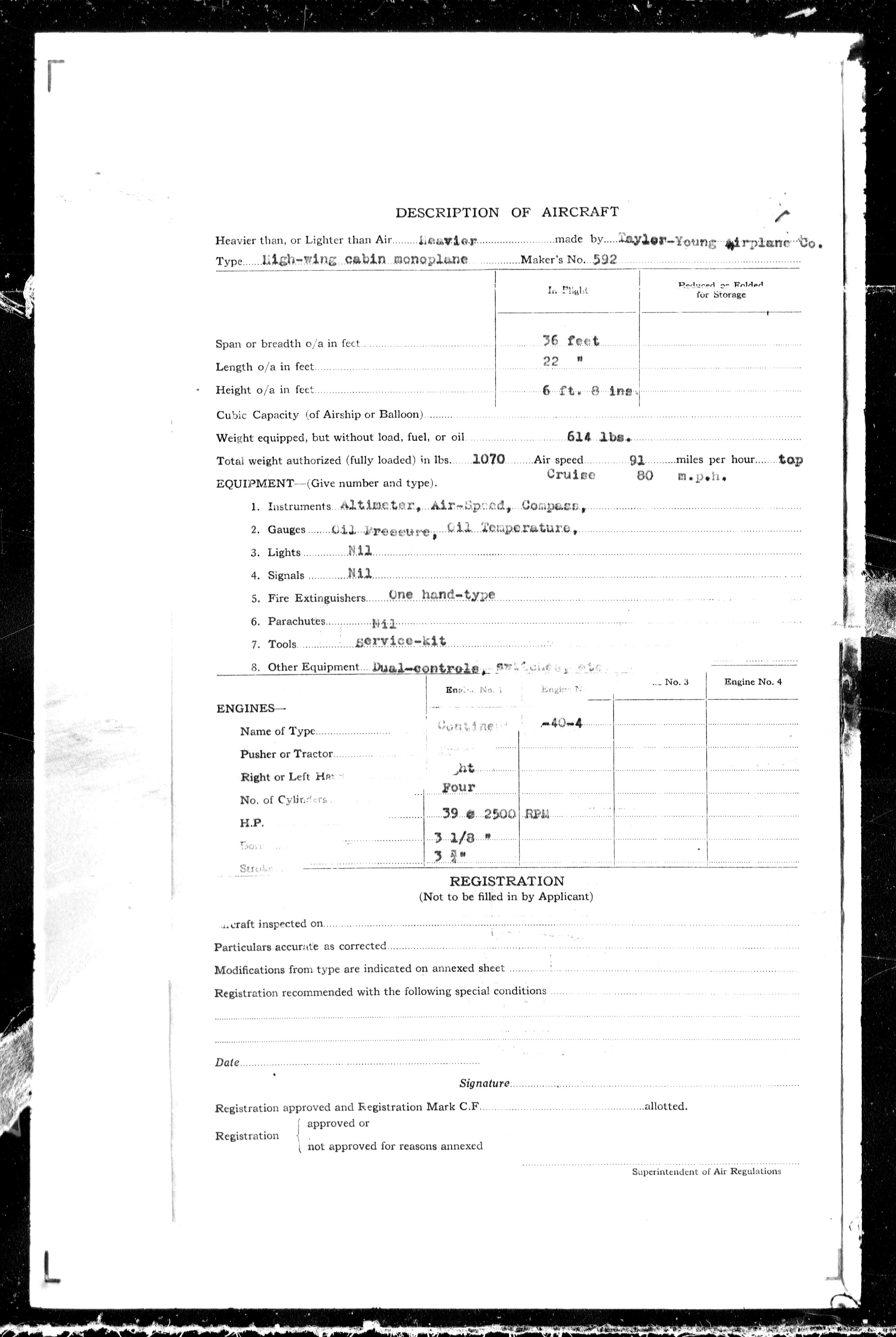 Department of Transport : Civil aircraft registration, inspection and operation files, 1920-1986 : T-7460