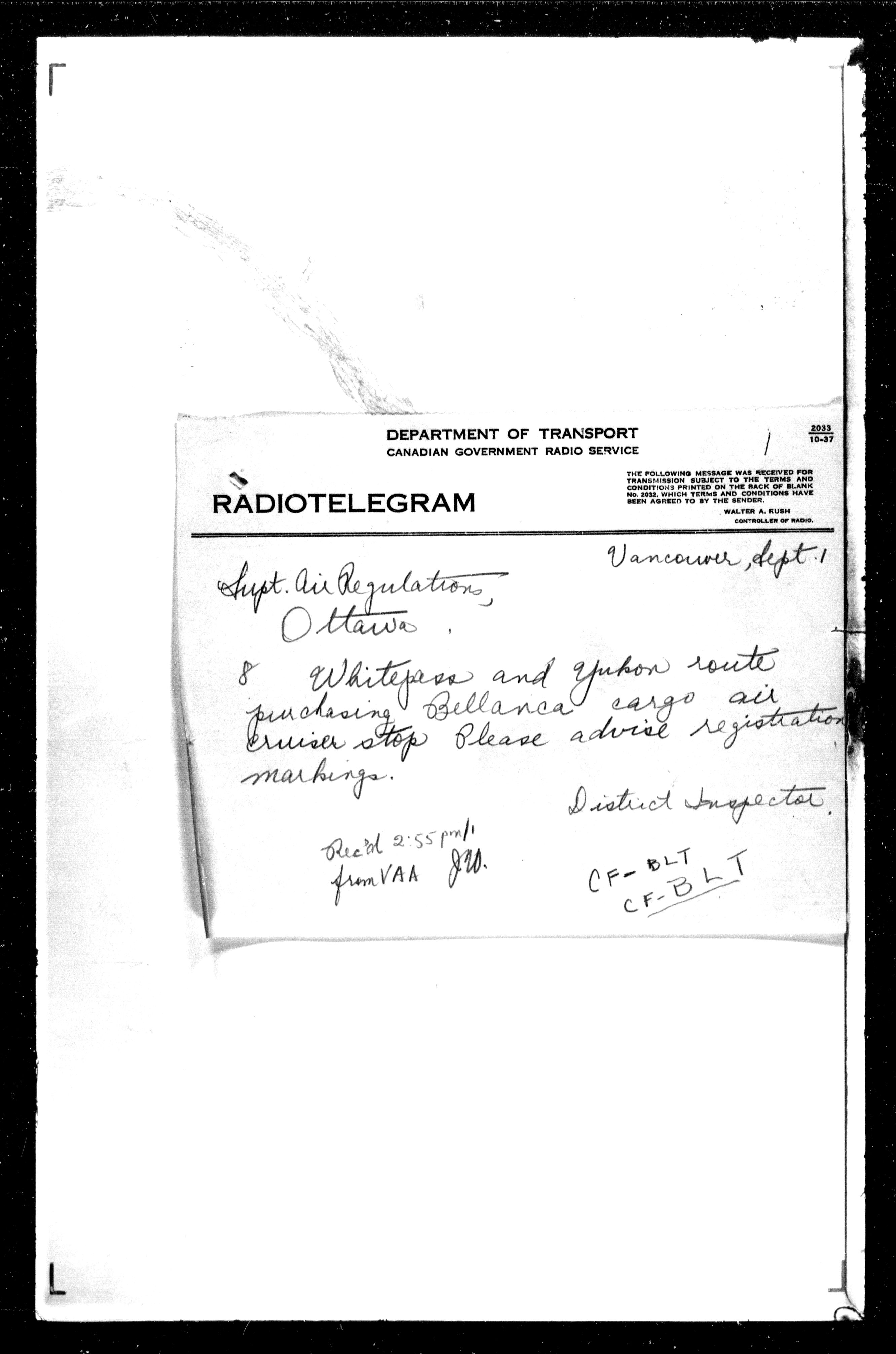 Department of Transport : Civil aircraft registration, inspection and operation files, block 5008, 1920-1986 - 7462