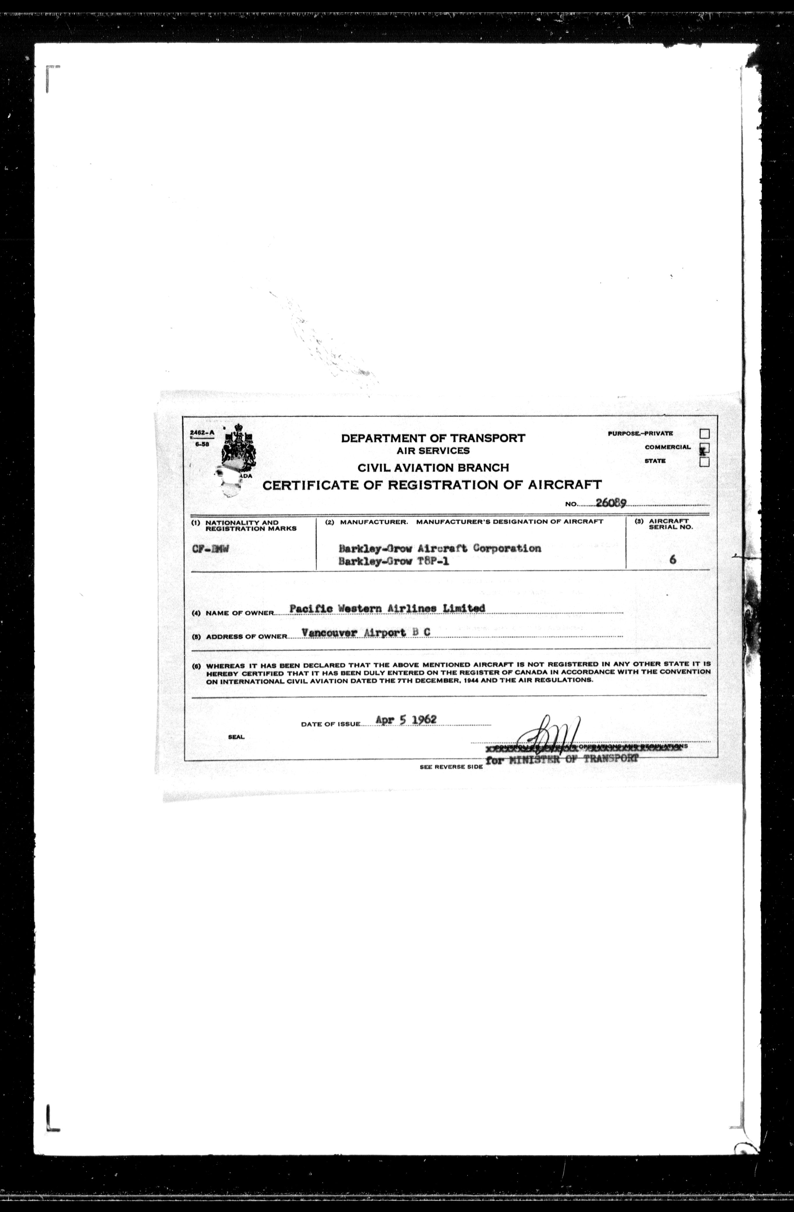 Department of Transport : Civil aircraft registration, inspection and operation files, 1920-1986 : T-7463