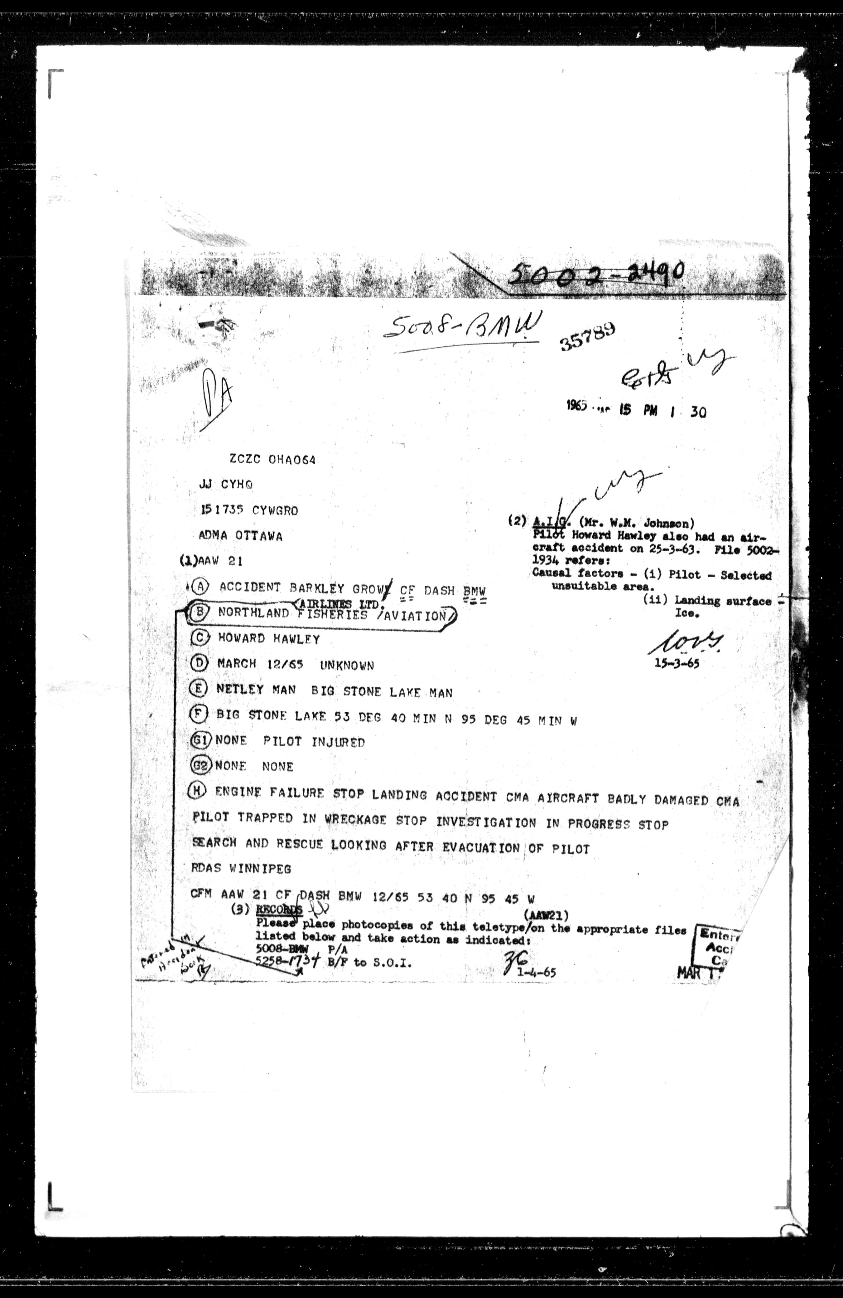 Department of Transport : Civil aircraft registration, inspection and operation files, block 5008, 1920-1986 - 7463