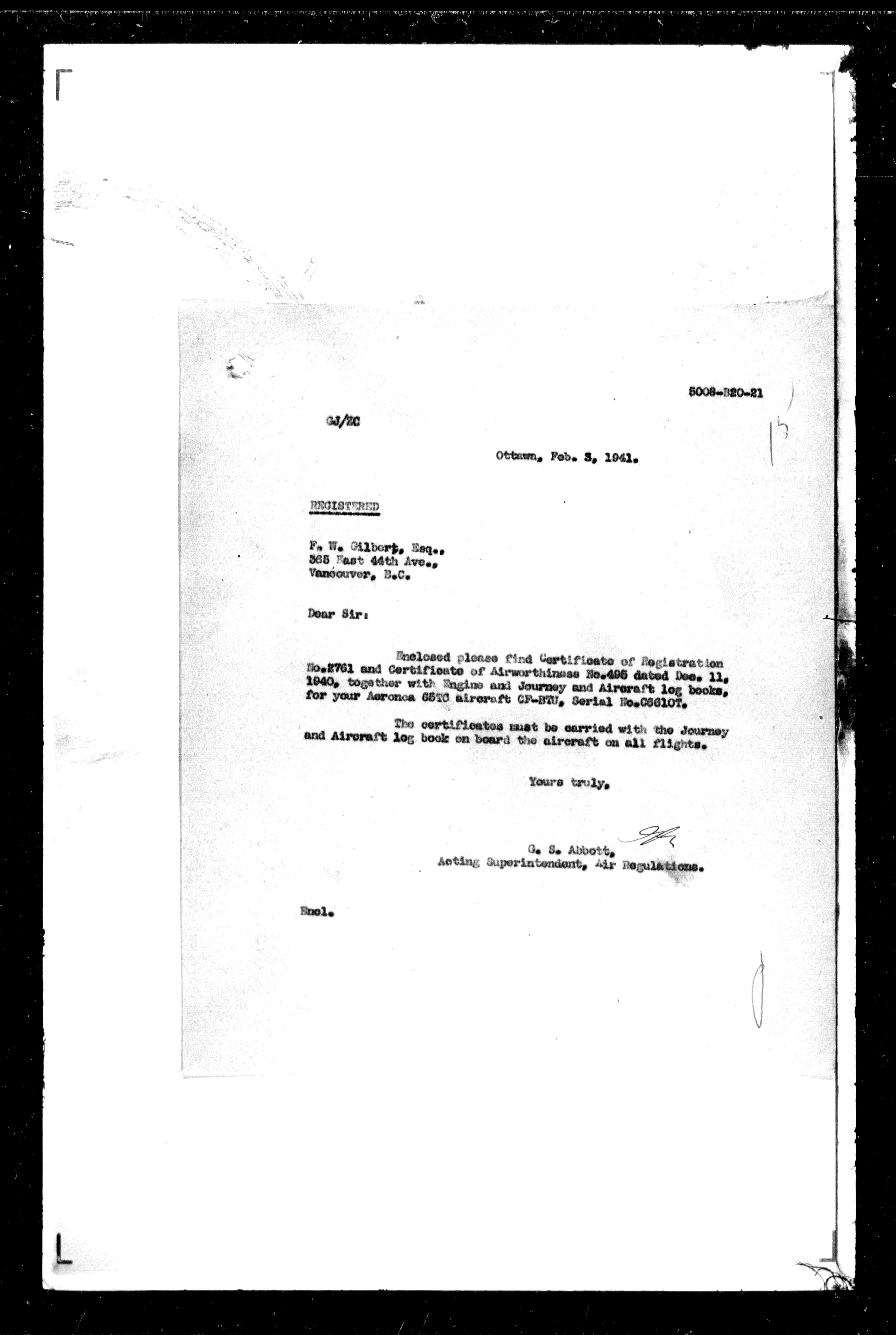 Department of Transport : Civil aircraft registration, inspection and operation files, block 5008, 1920-1986 - 7467