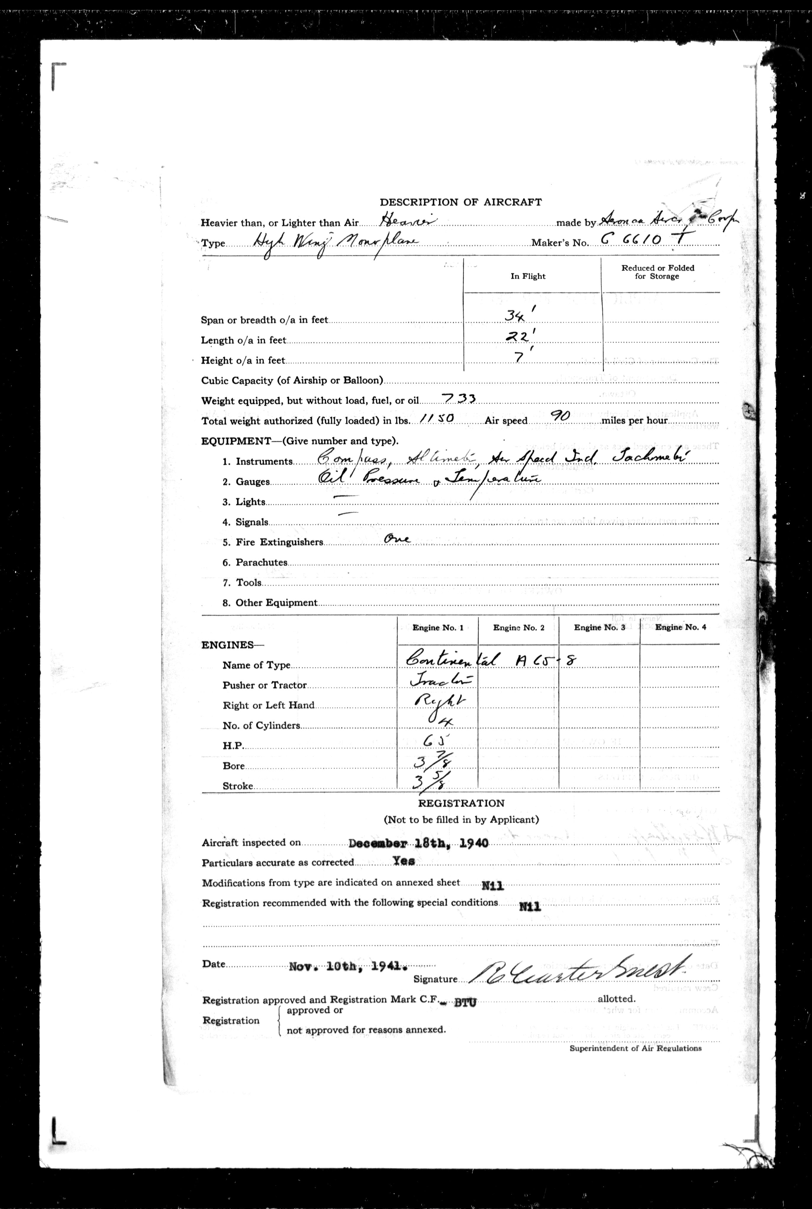 Department of Transport : Civil aircraft registration, inspection and operation files, block 5008, 1920-1986 - 7467