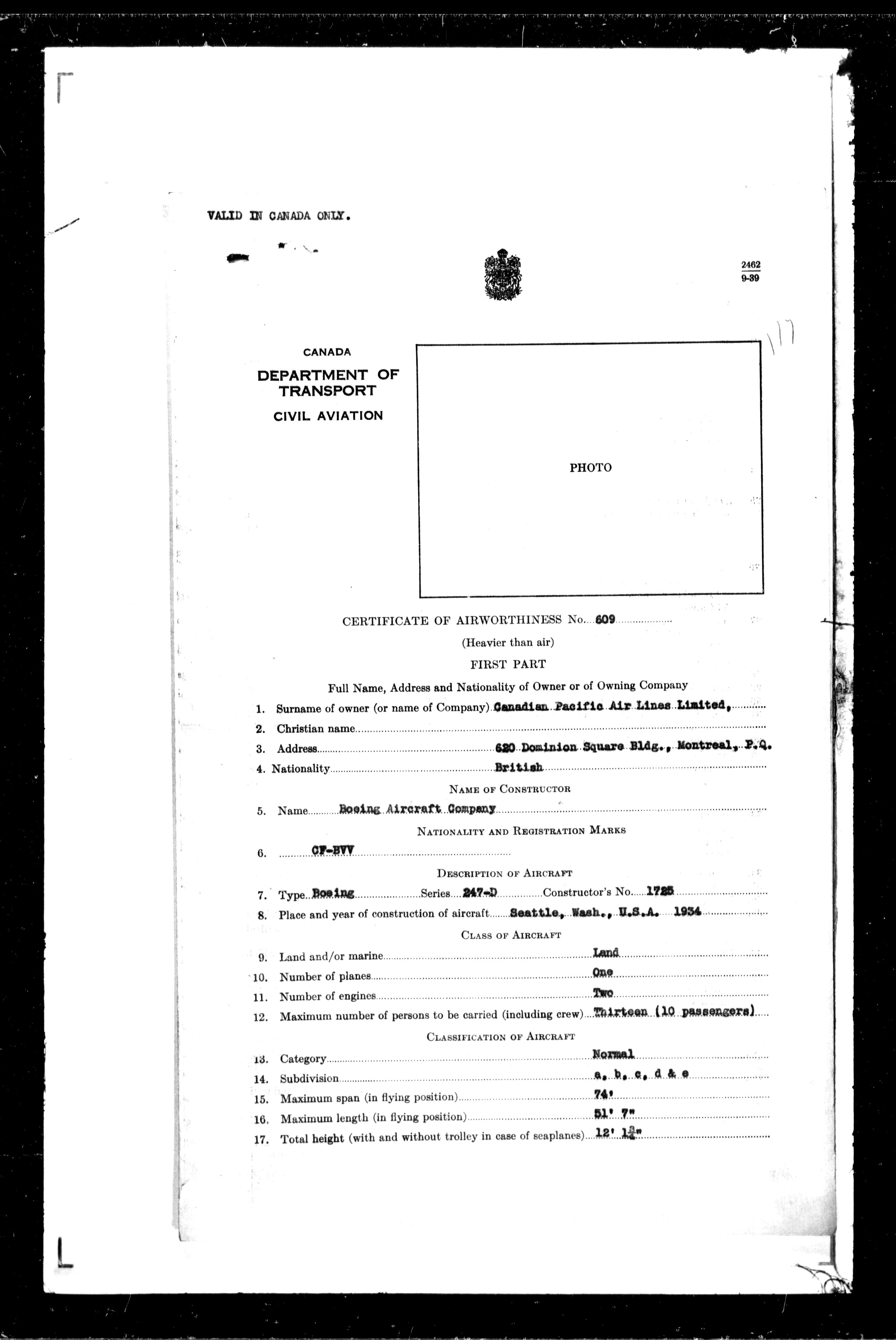 Department of Transport : Civil aircraft registration, inspection and operation files, block 5008, 1920-1986 - 7469