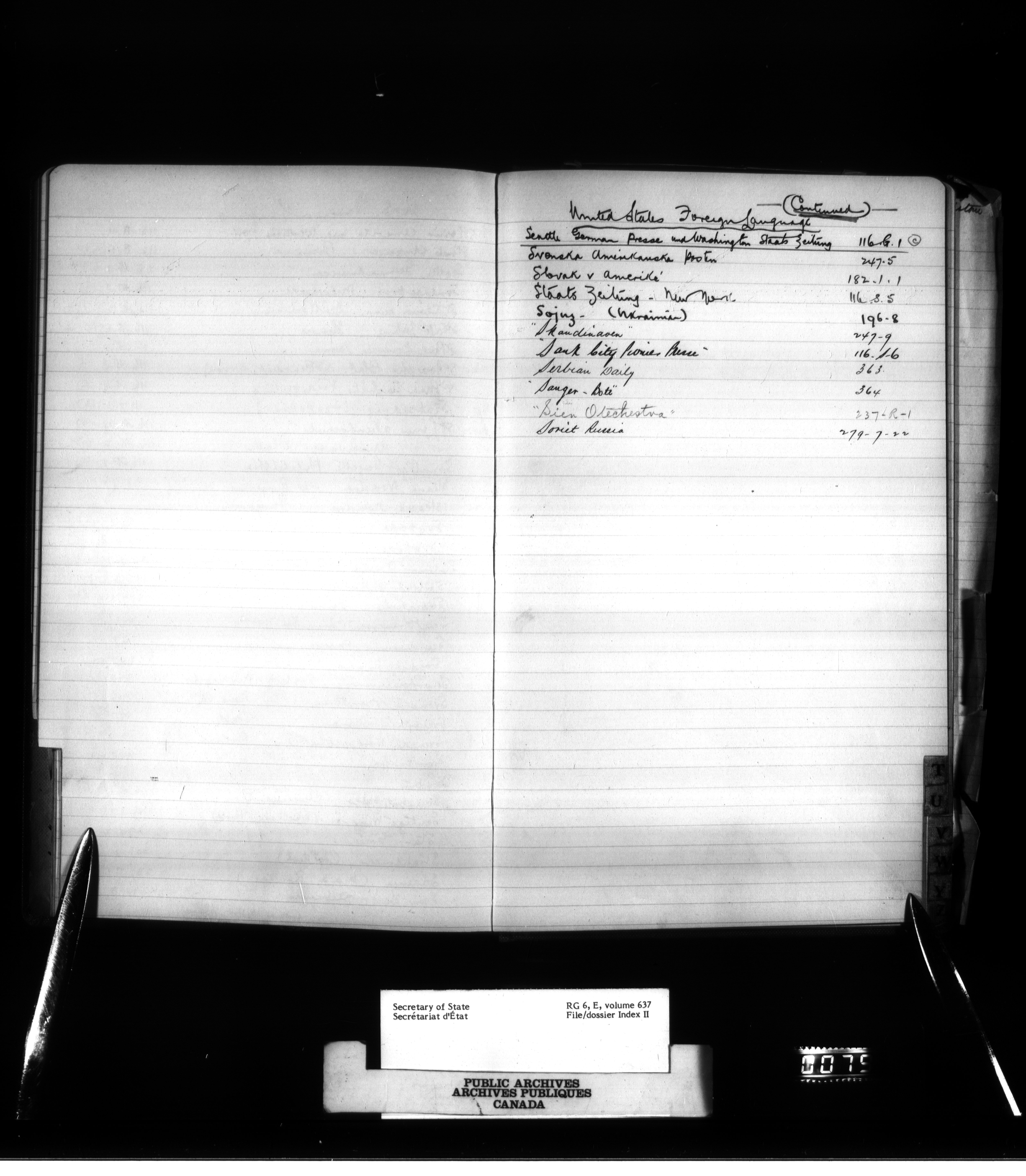 Secretary of State : Chief Press Censor : T-747