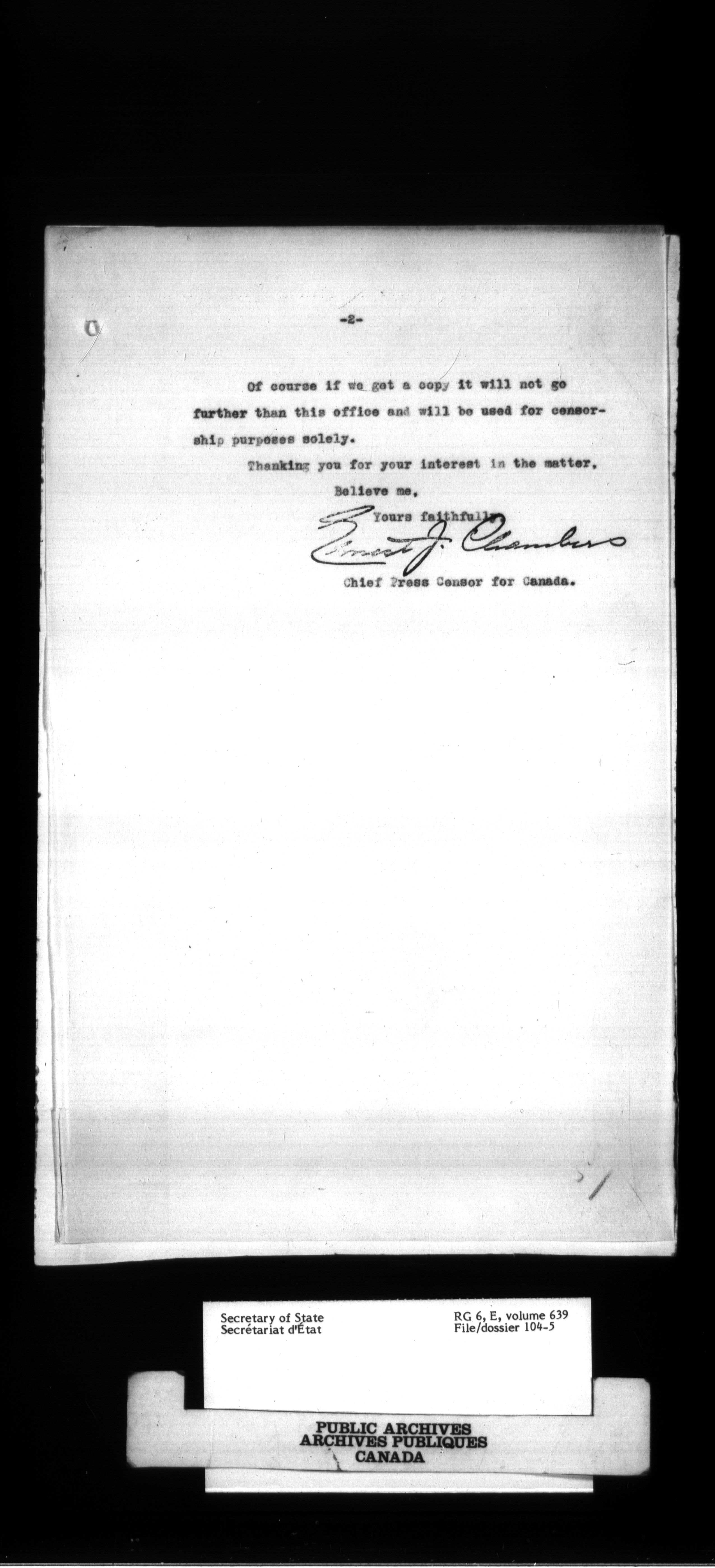 RG6 Secretary of State - Chief Press Censors - 747
