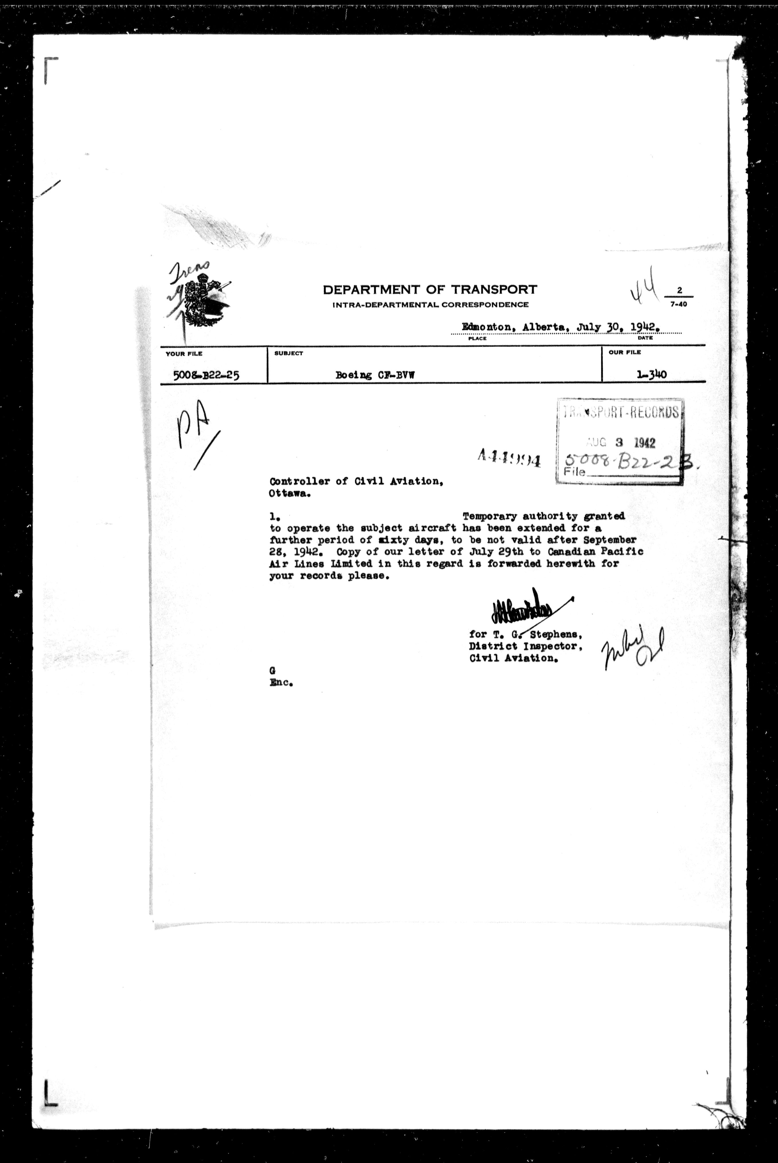 Department of Transport : Civil aircraft registration, inspection and operation files, block 5008, 1920-1986 - 7470