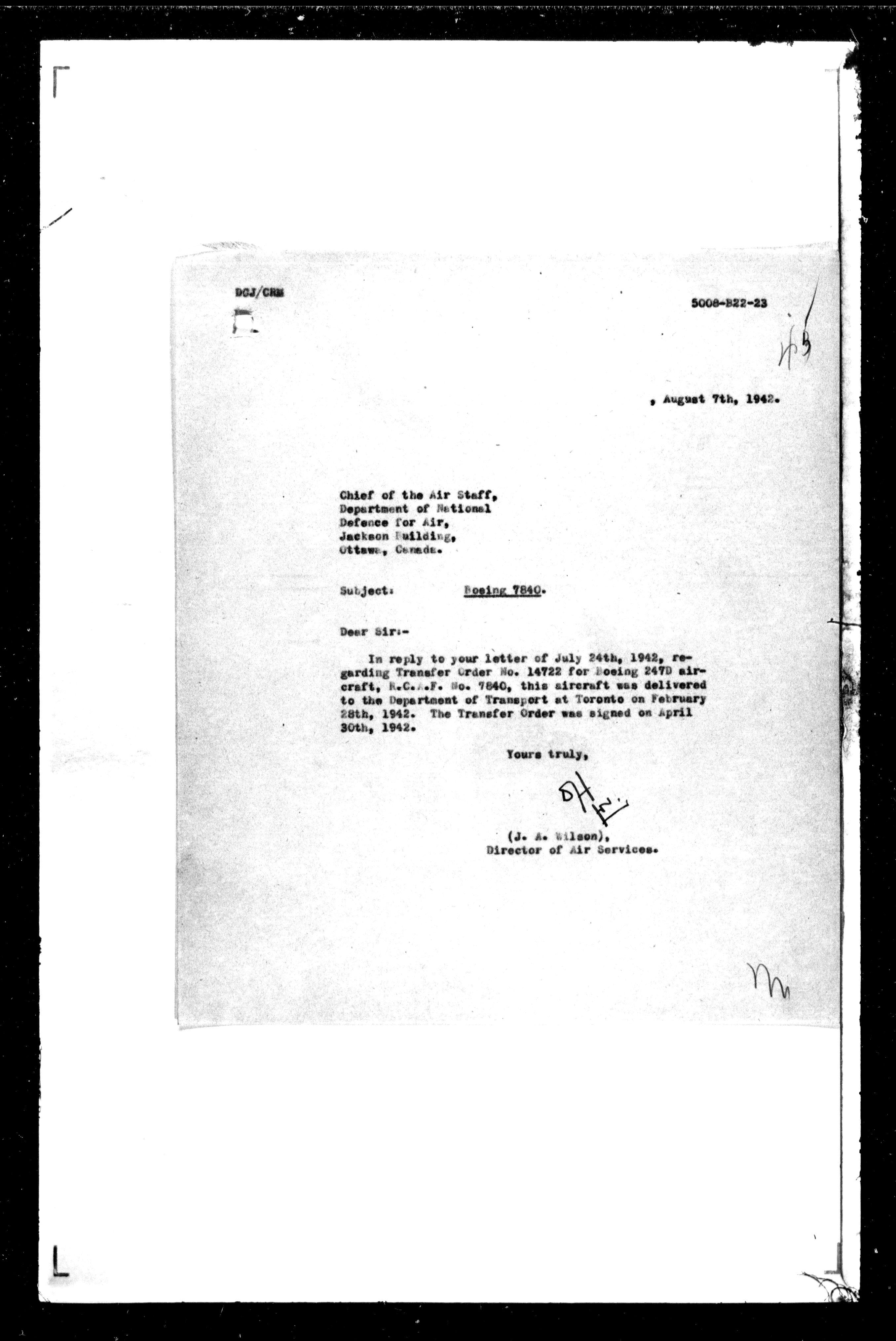 Department of Transport : Civil aircraft registration, inspection and operation files, block 5008, 1920-1986 - 7470