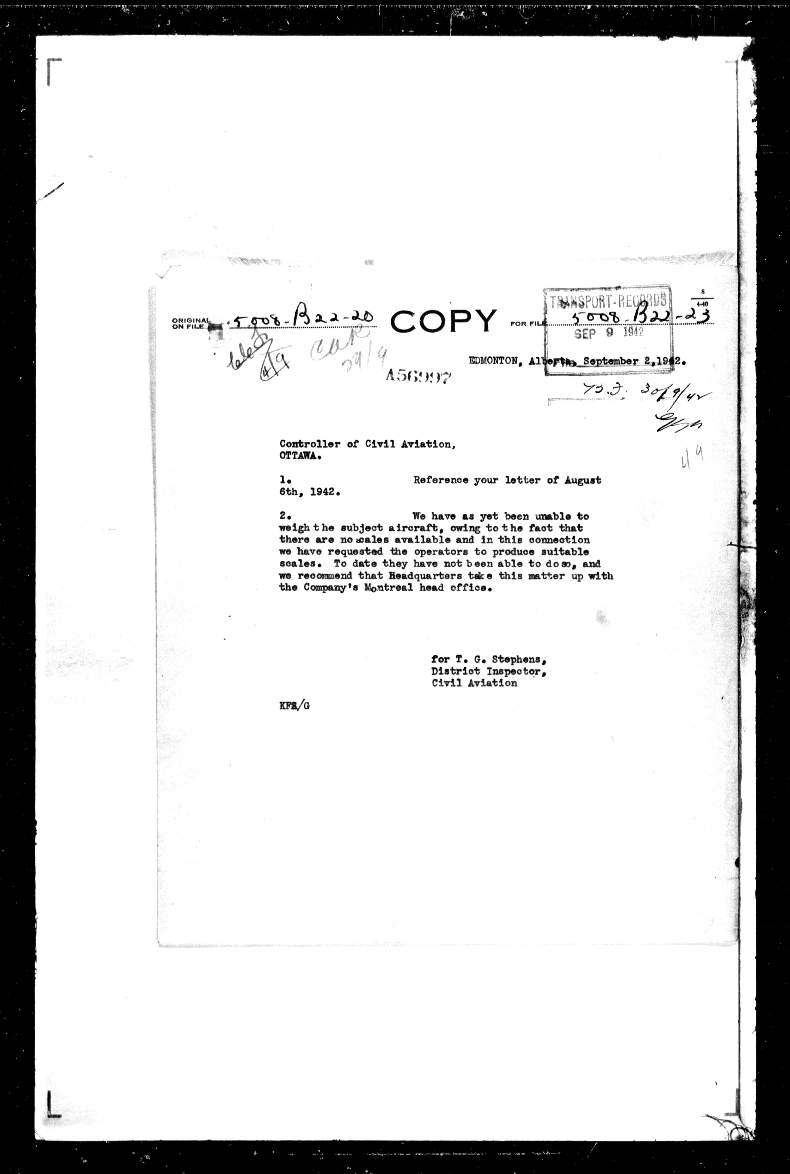 Department of Transport : Civil aircraft registration, inspection and operation files, block 5008, 1920-1986 - 7470