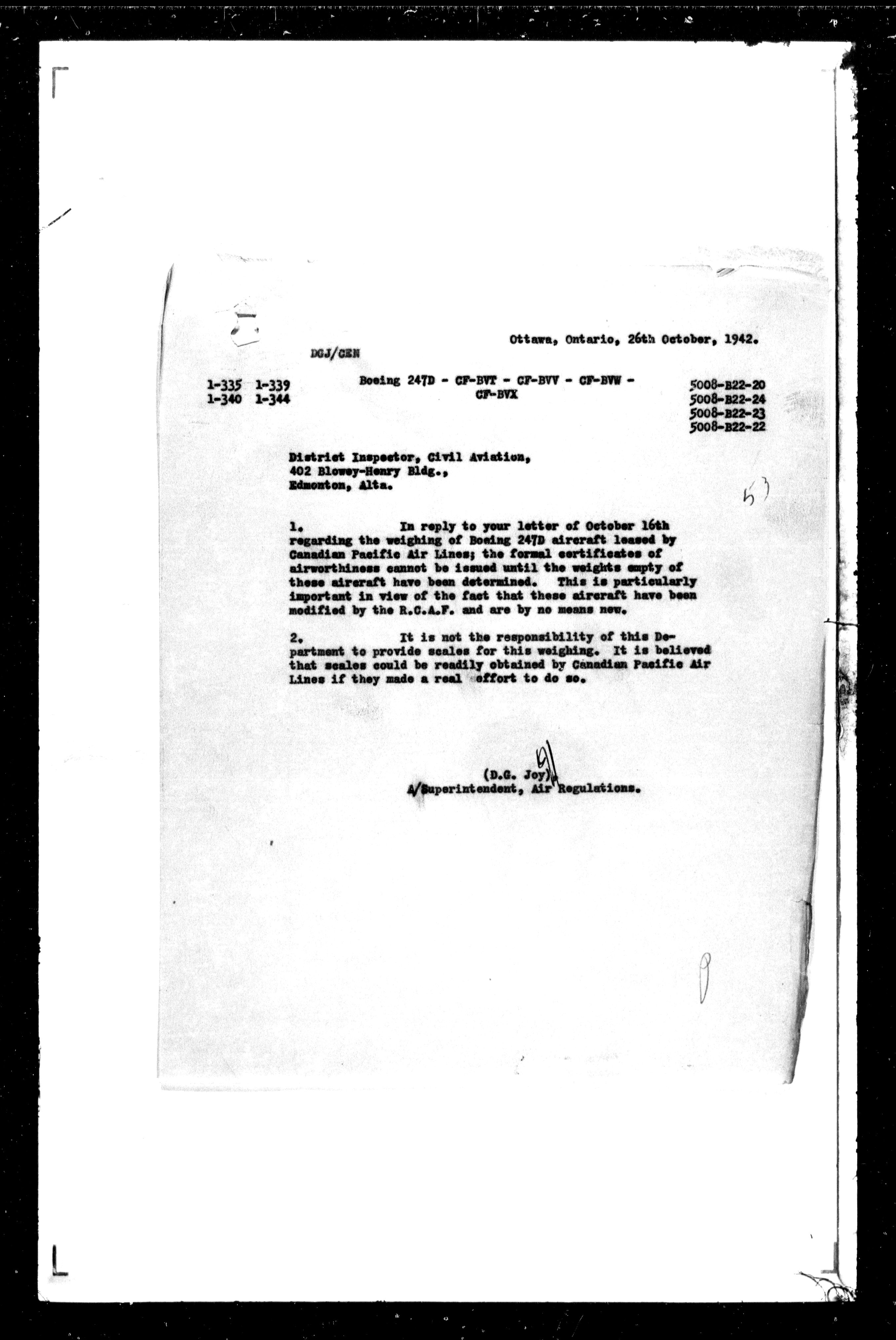 Department of Transport : Civil aircraft registration, inspection and operation files, block 5008, 1920-1986 - 7470