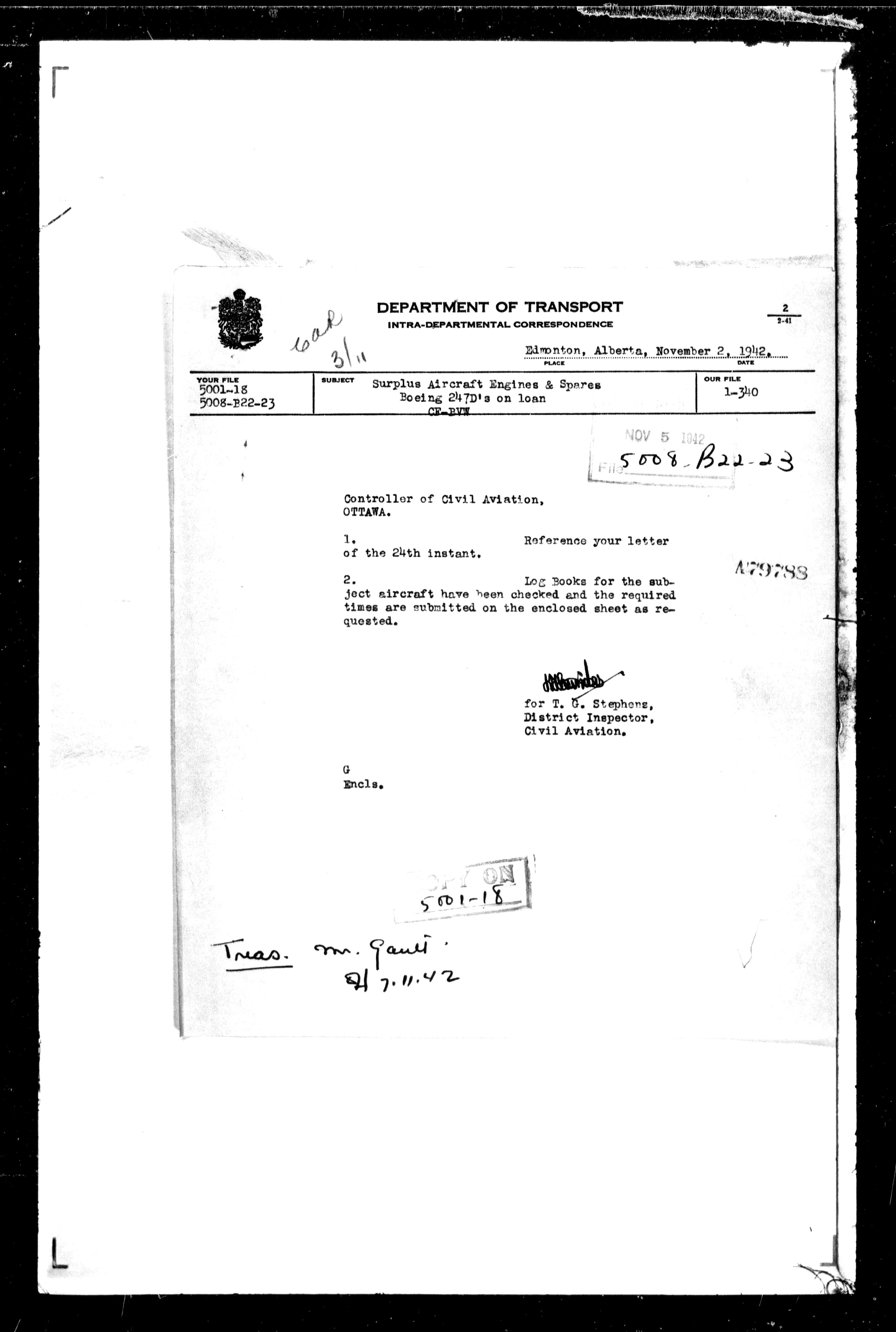 Department of Transport : Civil aircraft registration, inspection and operation files, block 5008, 1920-1986 - 7470