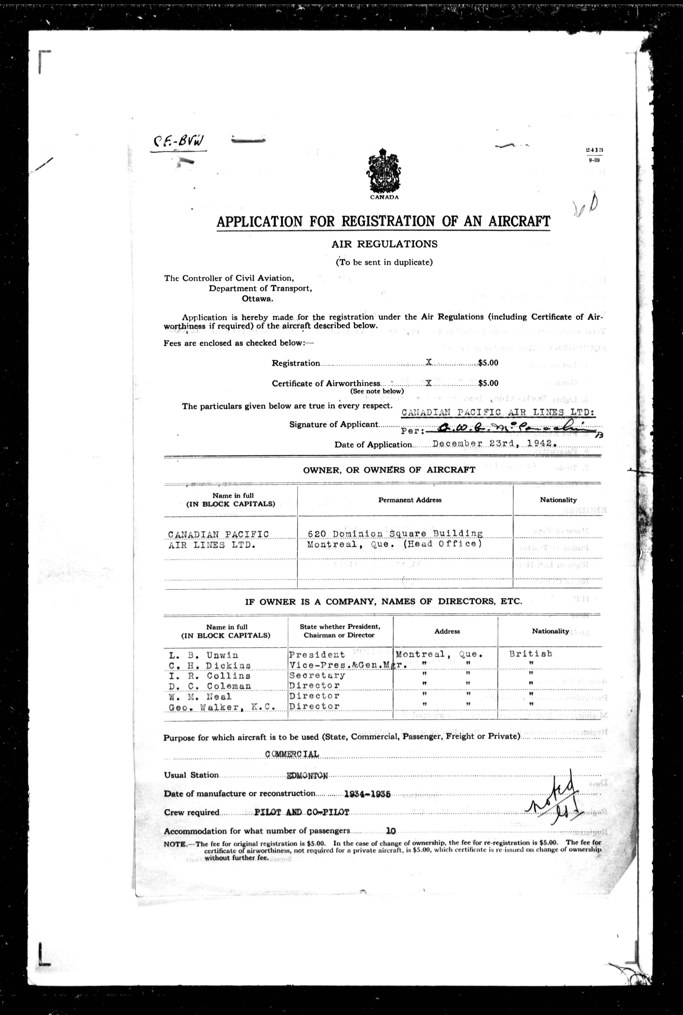 Department of Transport : Civil aircraft registration, inspection and operation files, 1920-1986 : T-7470