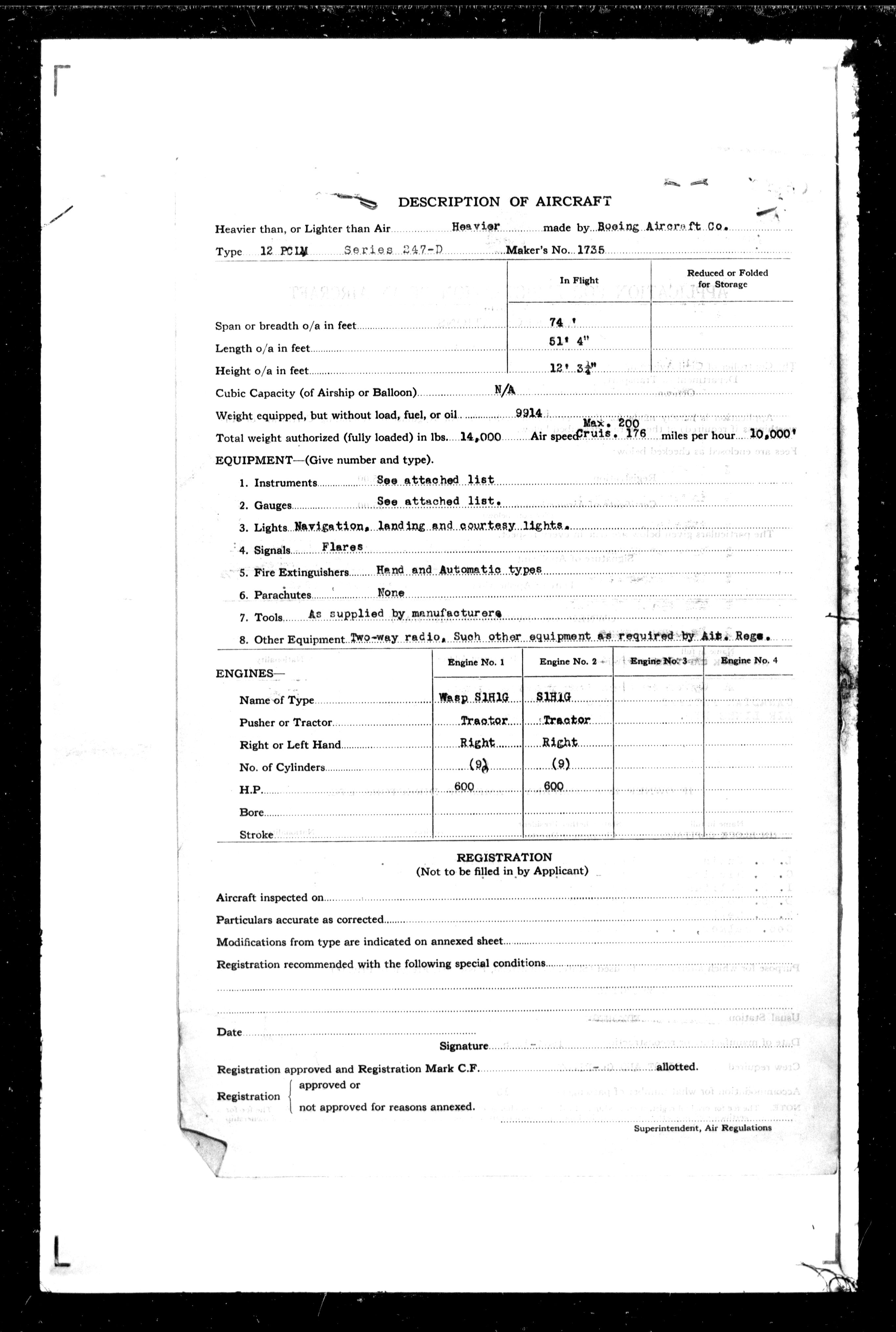 Department of Transport : Civil aircraft registration, inspection and operation files, block 5008, 1920-1986 - 7470