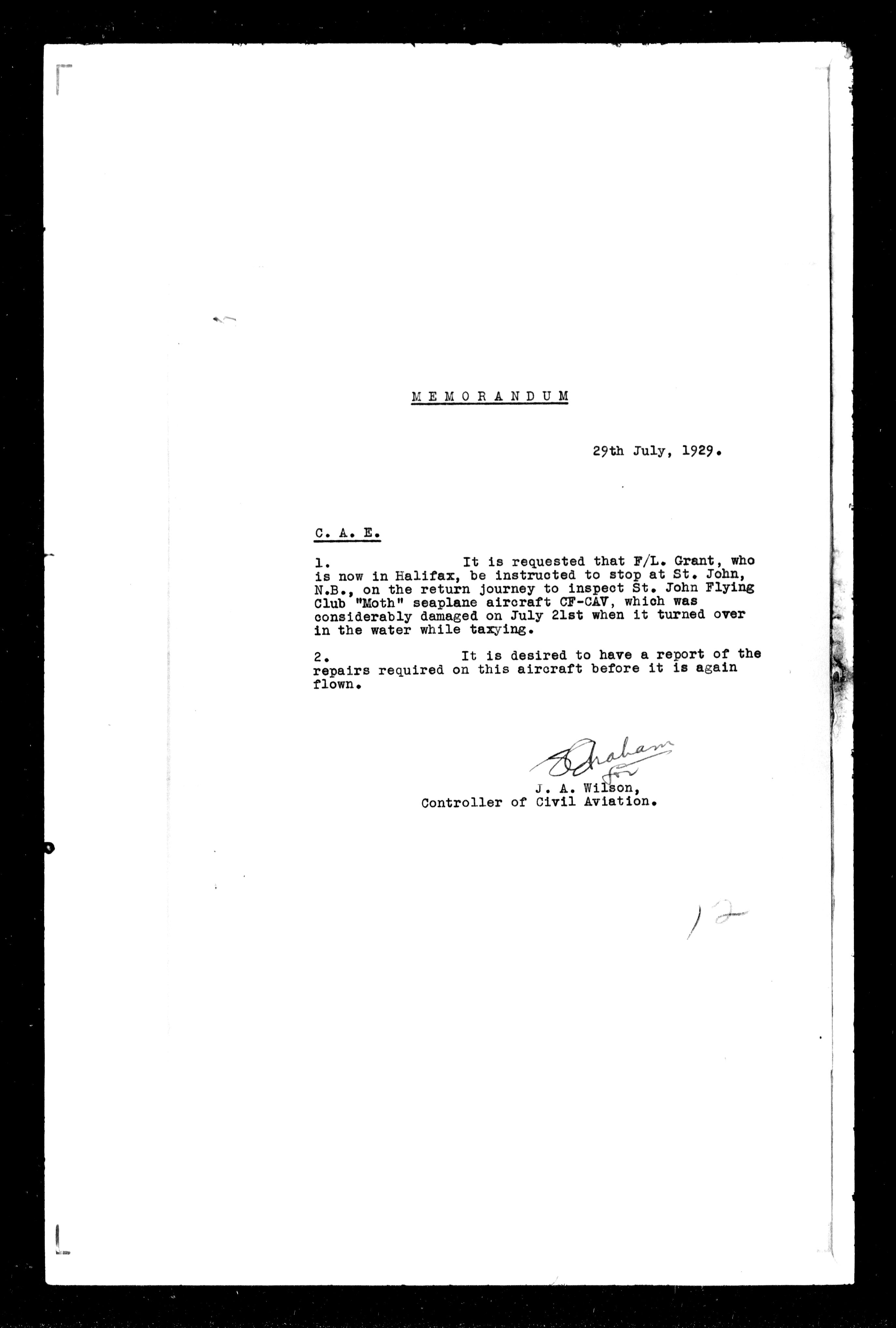 Department of Transport : Civil aircraft registration, inspection and operation files, 1920-1986 : T-7472