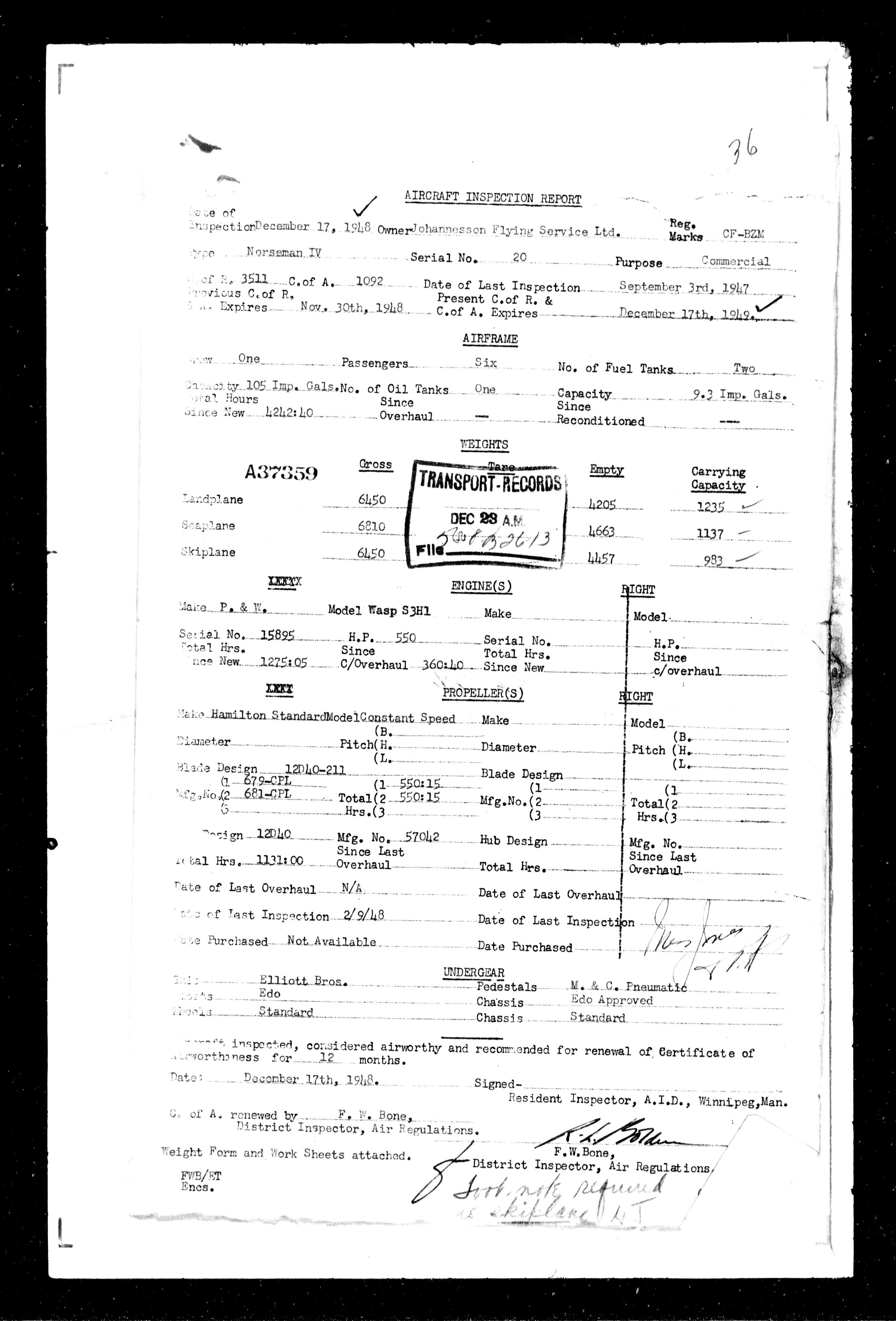 Department of Transport : Civil aircraft registration, inspection and operation files, block 5008, 1920-1986 - 7472