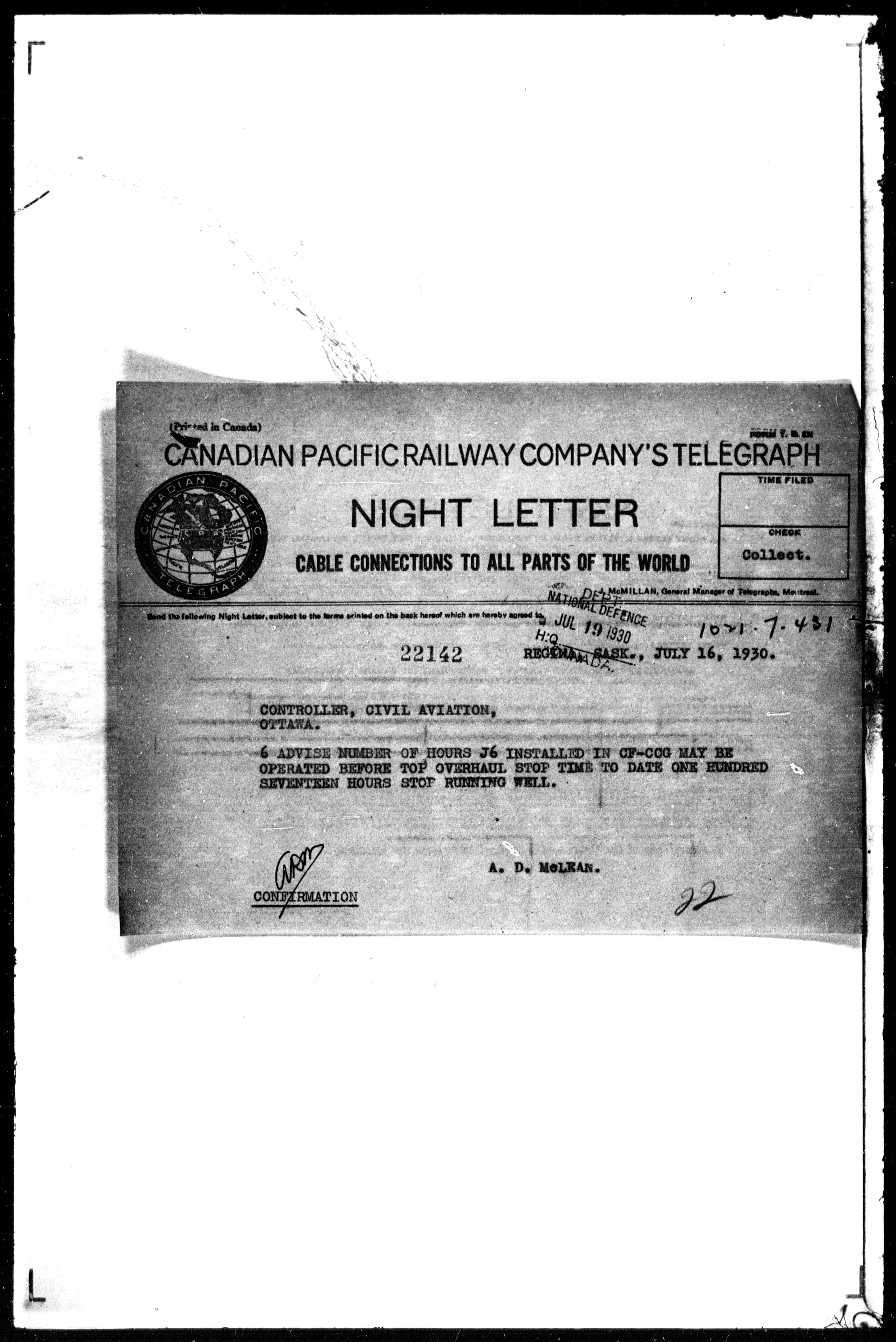 Department of Transport : Civil aircraft registration, inspection and operation files, block 5008, 1920-1986 - 7475