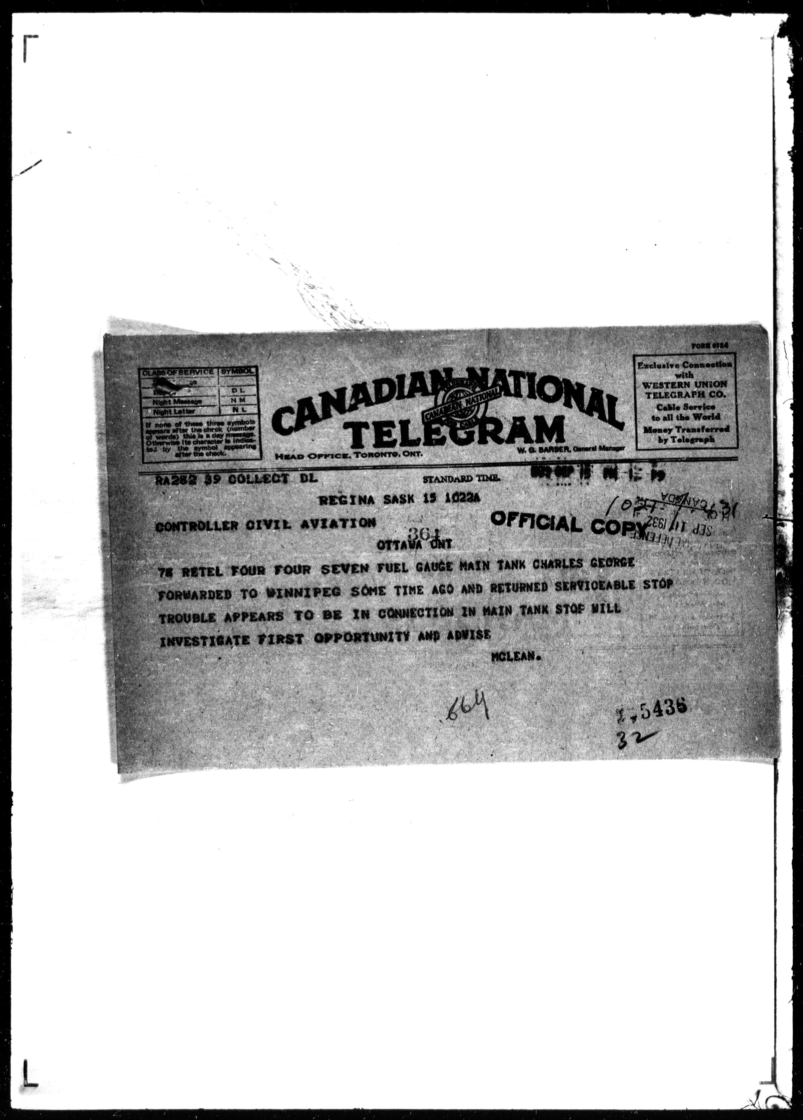 Department of Transport : Civil aircraft registration, inspection and operation files, block 5008, 1920-1986 - 7475