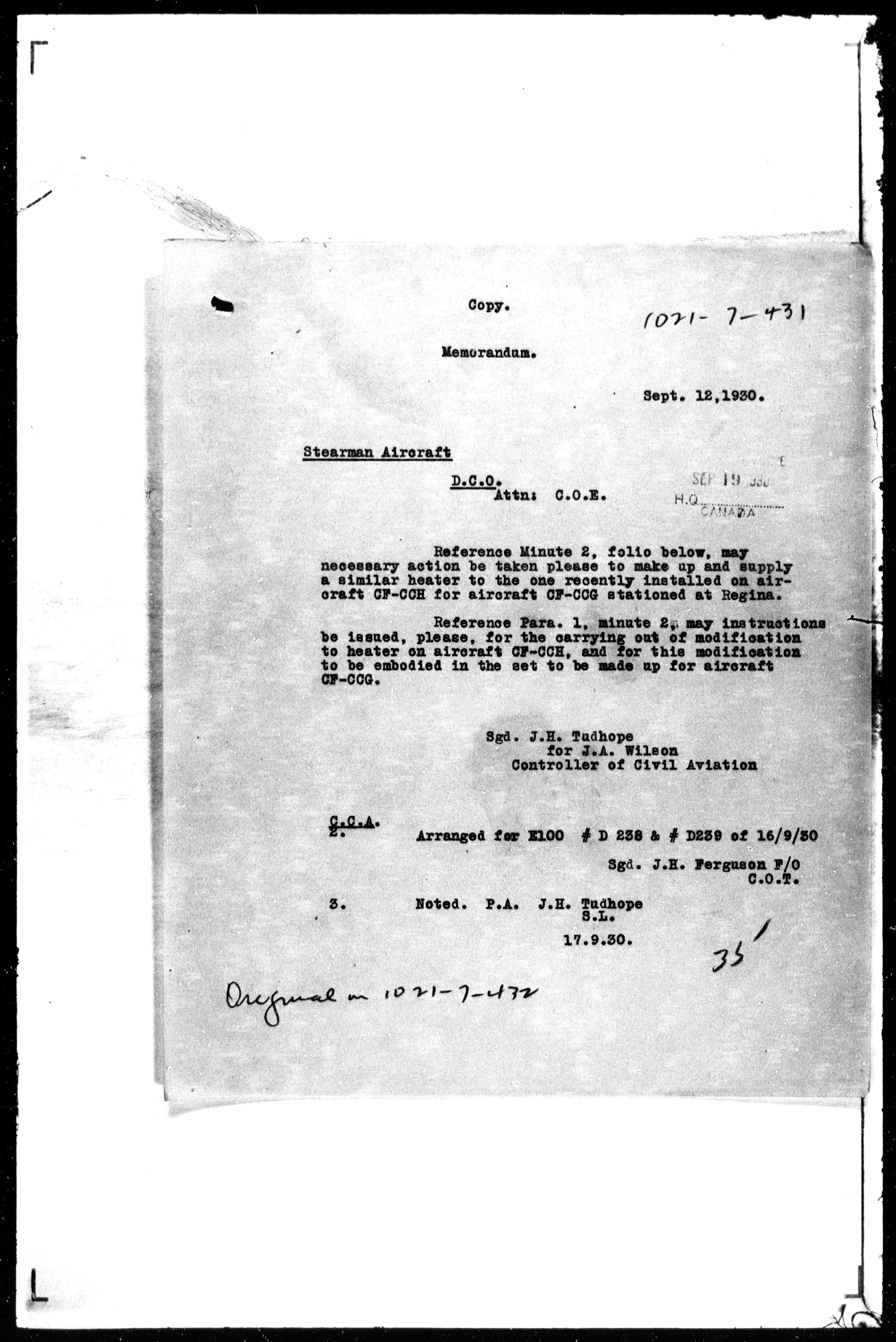 Department of Transport : Civil aircraft registration, inspection and operation files, 1920-1986 : T-7475