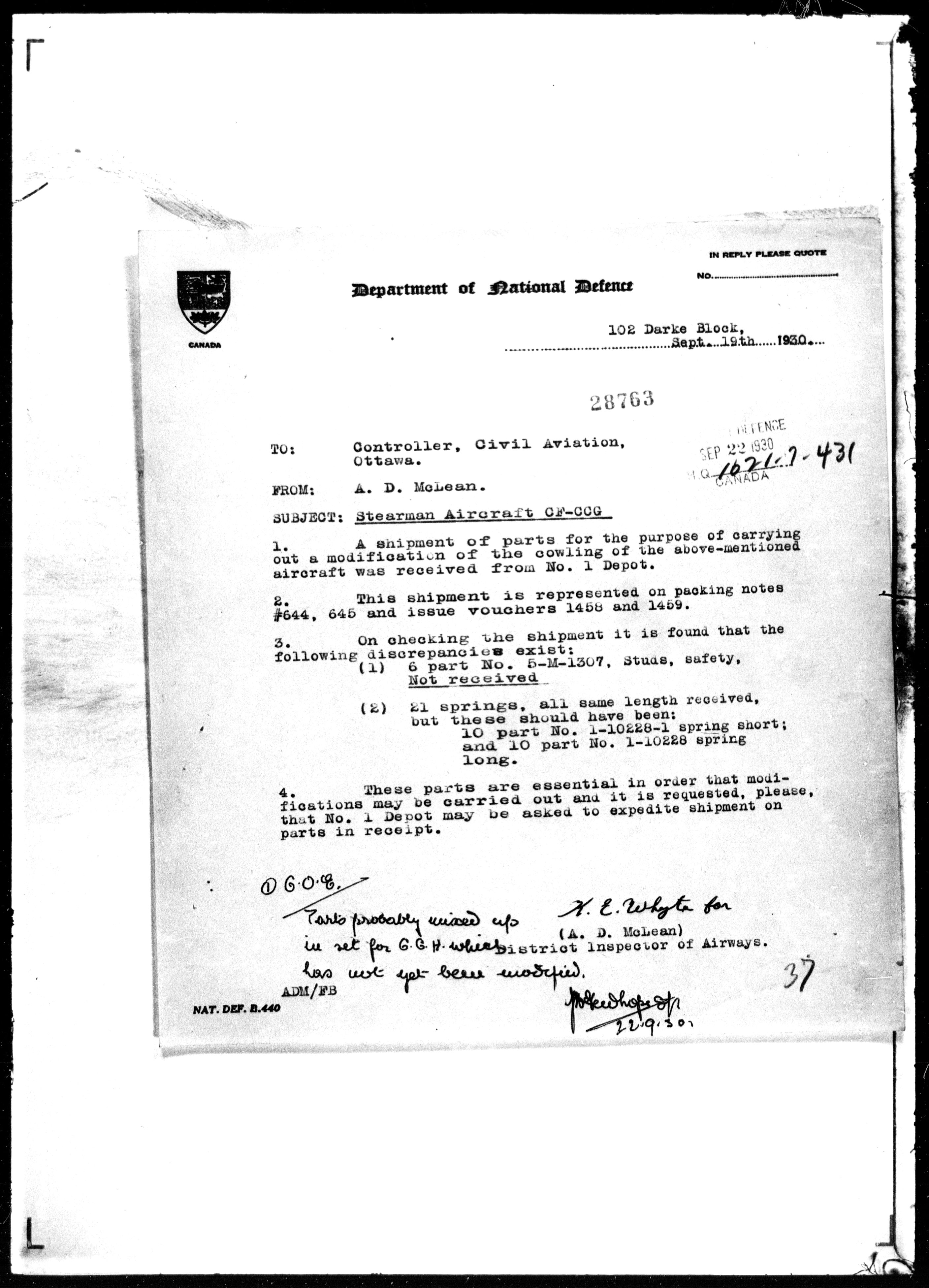Department of Transport : Civil aircraft registration, inspection and operation files, block 5008, 1920-1986 - 7475