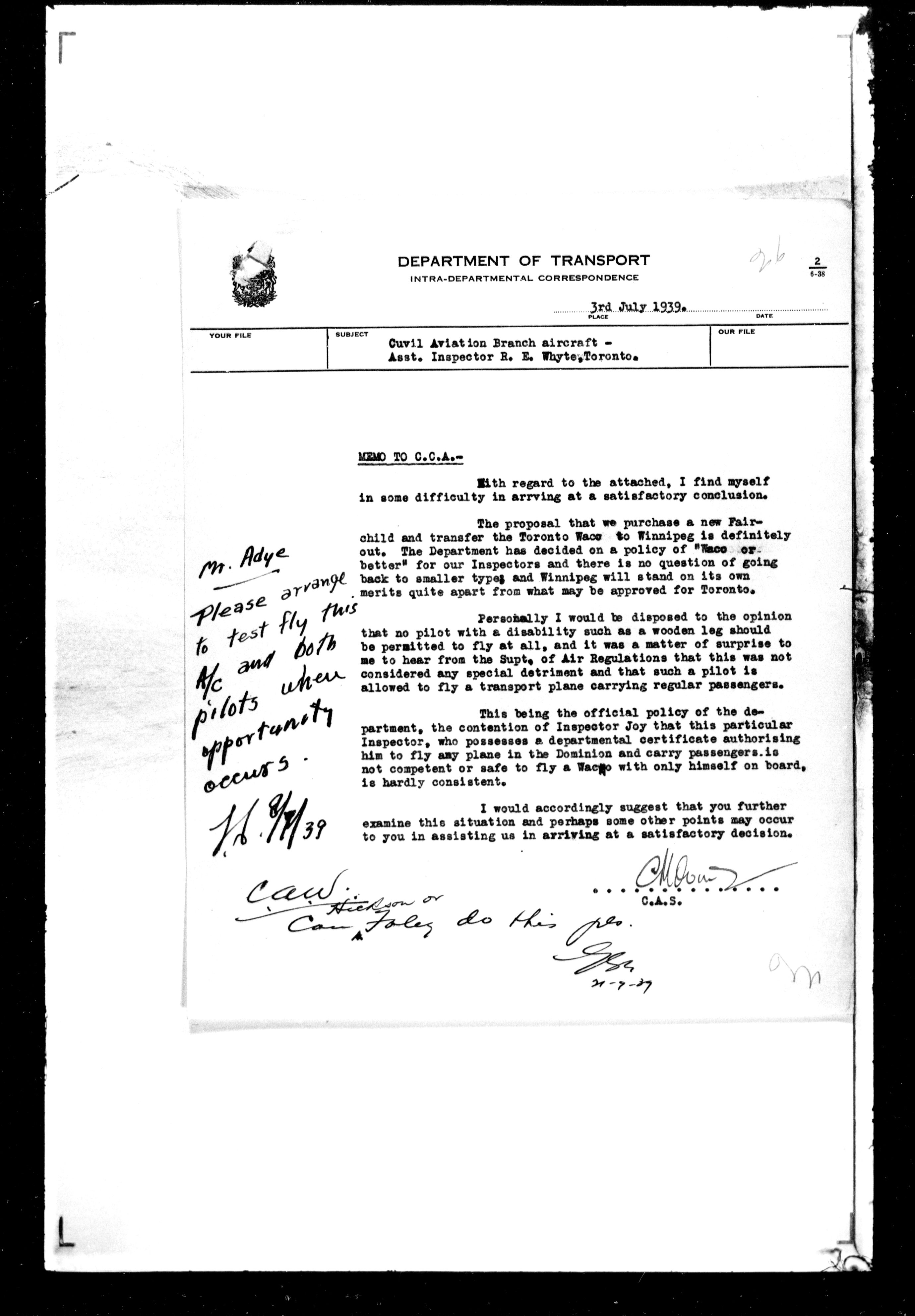 Department of Transport : Civil aircraft registration, inspection and operation files, block 5008, 1920-1986 - 7477