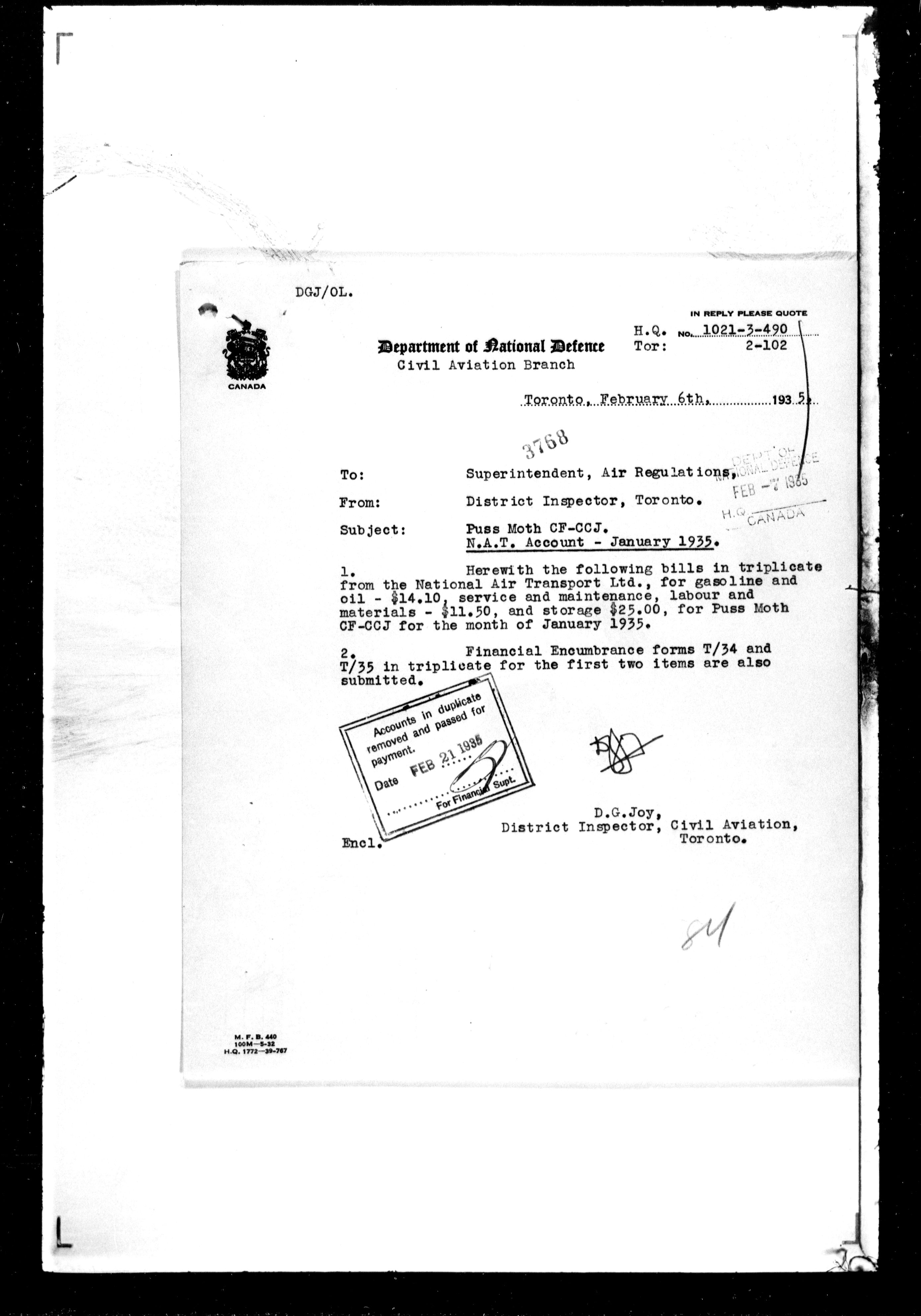 Department of Transport : Civil aircraft registration, inspection and operation files, block 5008, 1920-1986 - 7477