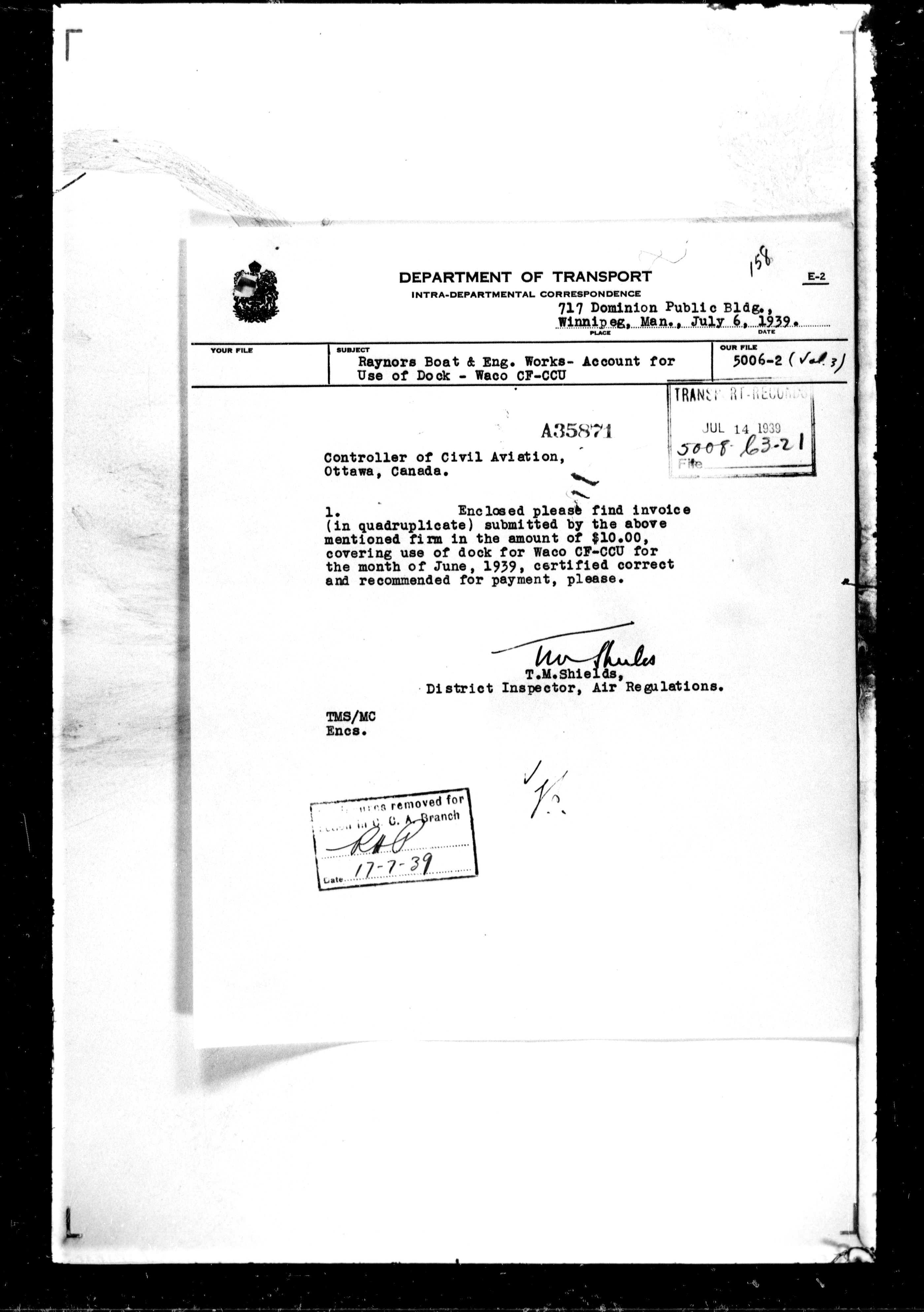 Department of Transport : Civil aircraft registration, inspection and operation files, block 5008, 1920-1986 - 7481