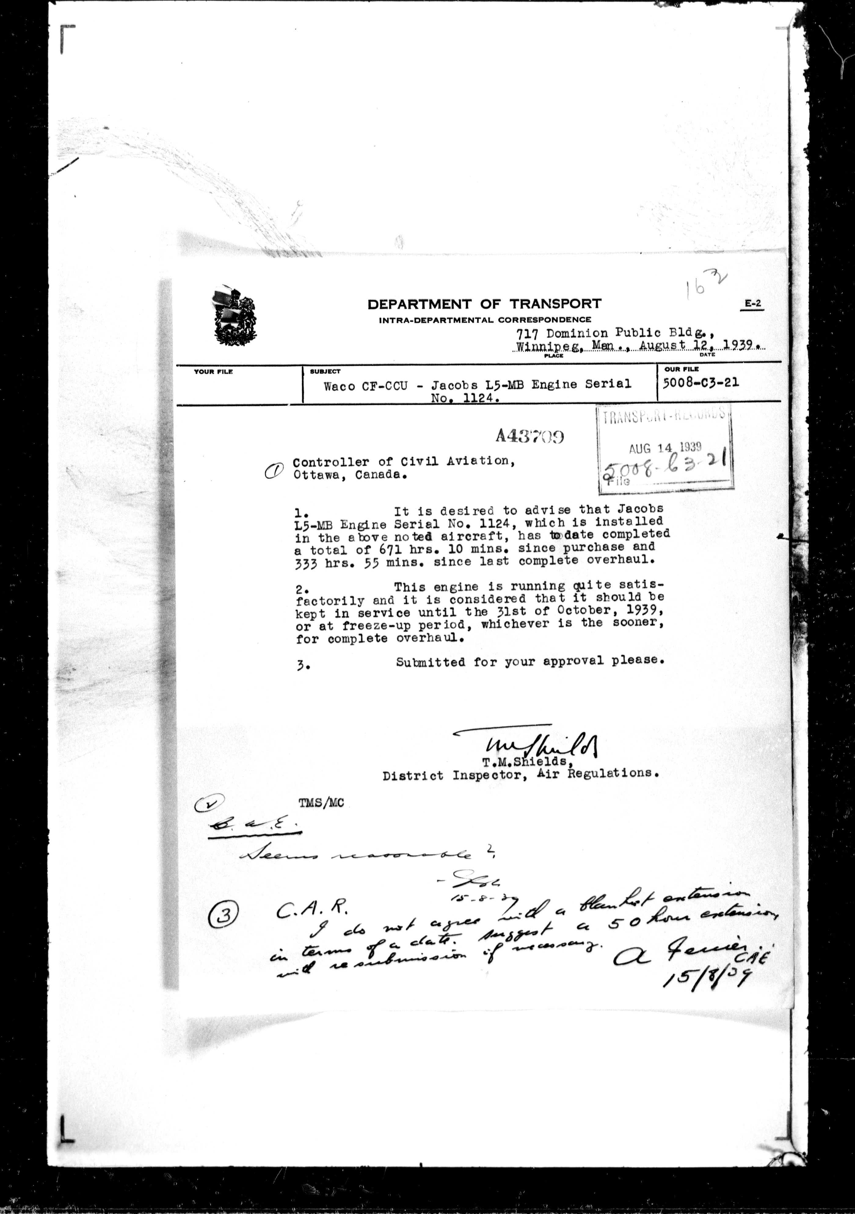 Department of Transport : Civil aircraft registration, inspection and operation files, 1920-1986 : T-7481