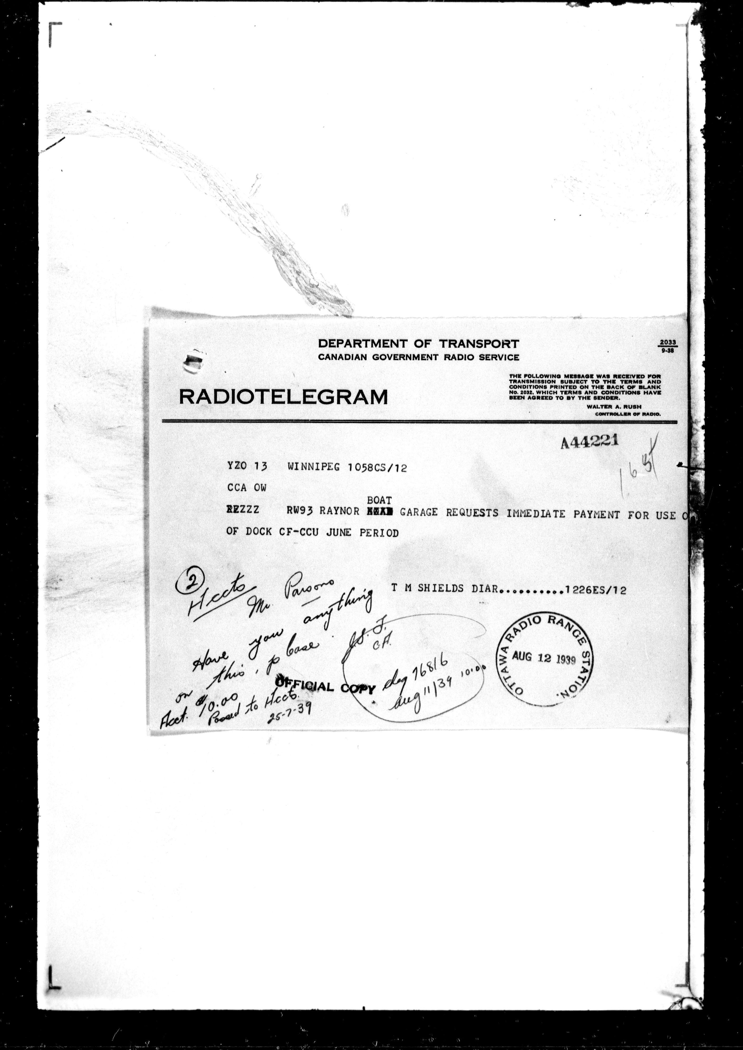 Department of Transport : Civil aircraft registration, inspection and operation files, 1920-1986 : T-7481