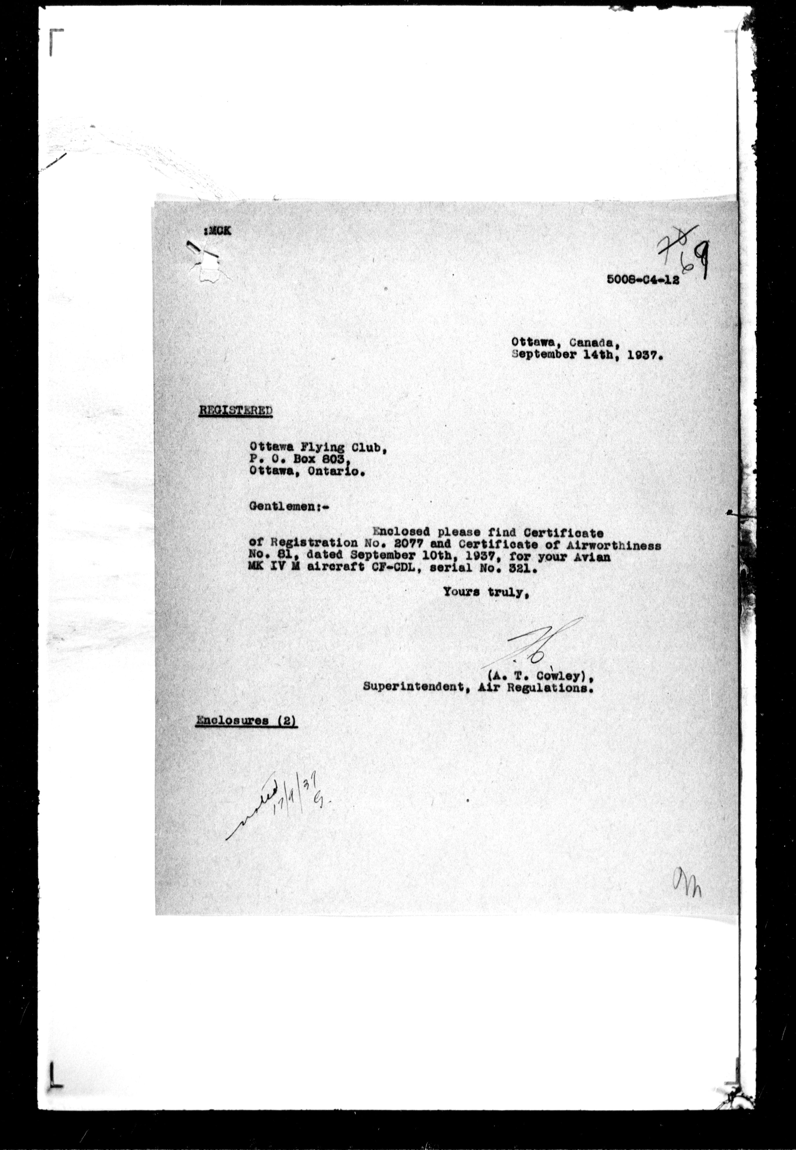 Department of Transport : Civil aircraft registration, inspection and operation files, block 5008, 1920-1986 - 7482