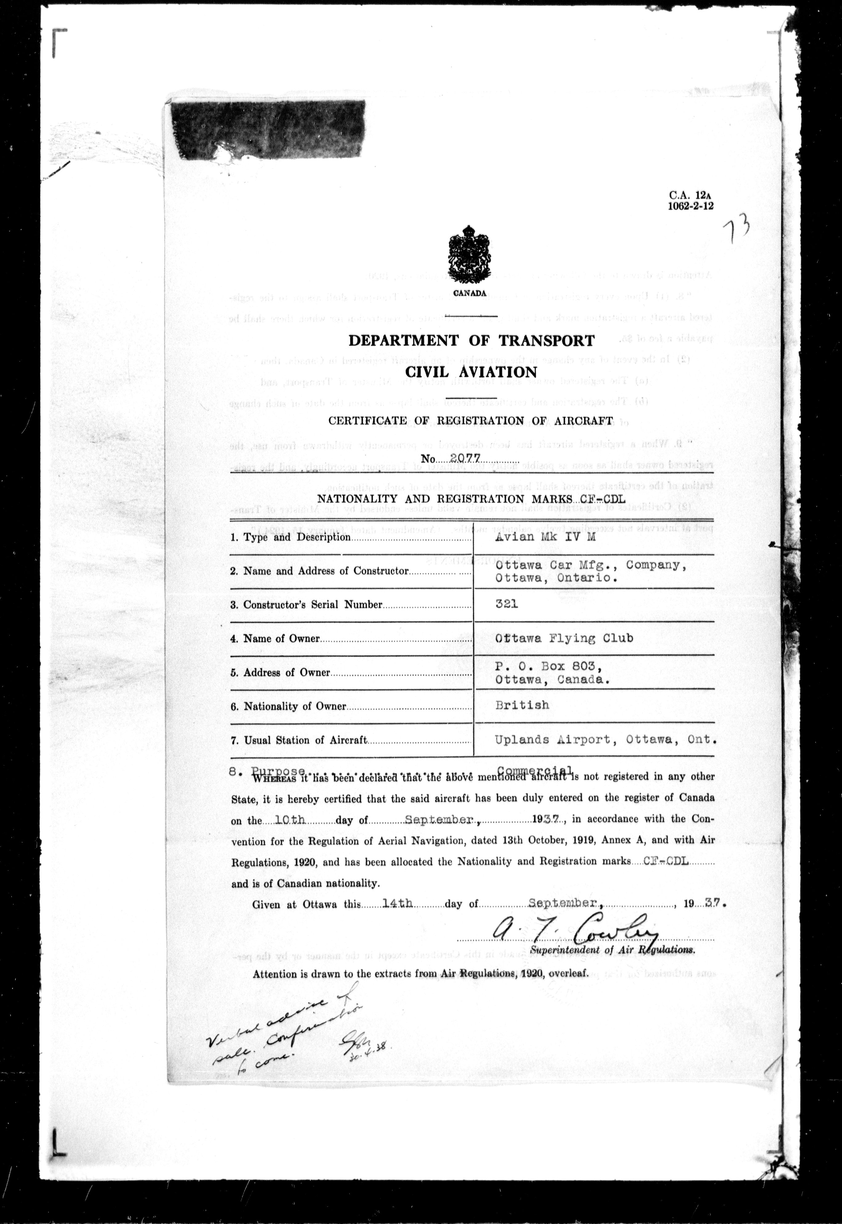 Department of Transport : Civil aircraft registration, inspection and operation files, block 5008, 1920-1986 - 7482