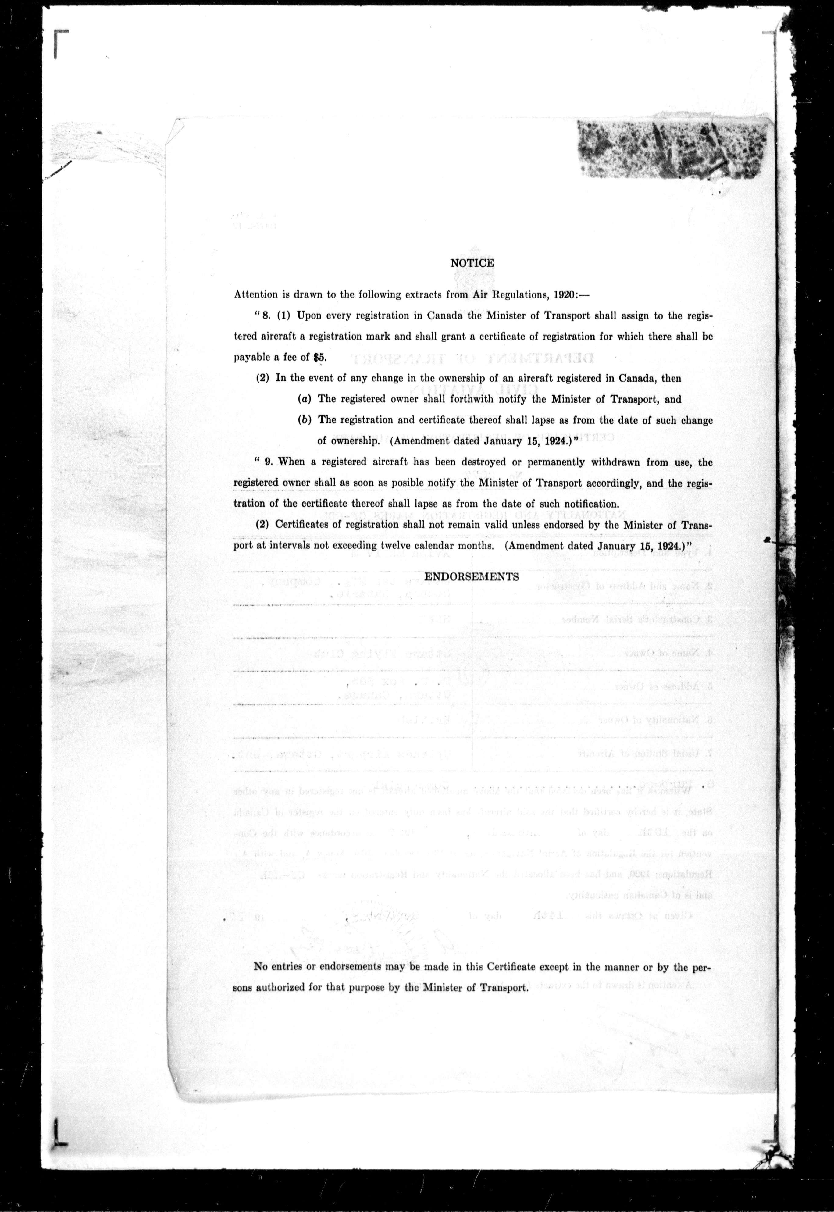 Department of Transport : Civil aircraft registration, inspection and operation files, block 5008, 1920-1986 - 7482