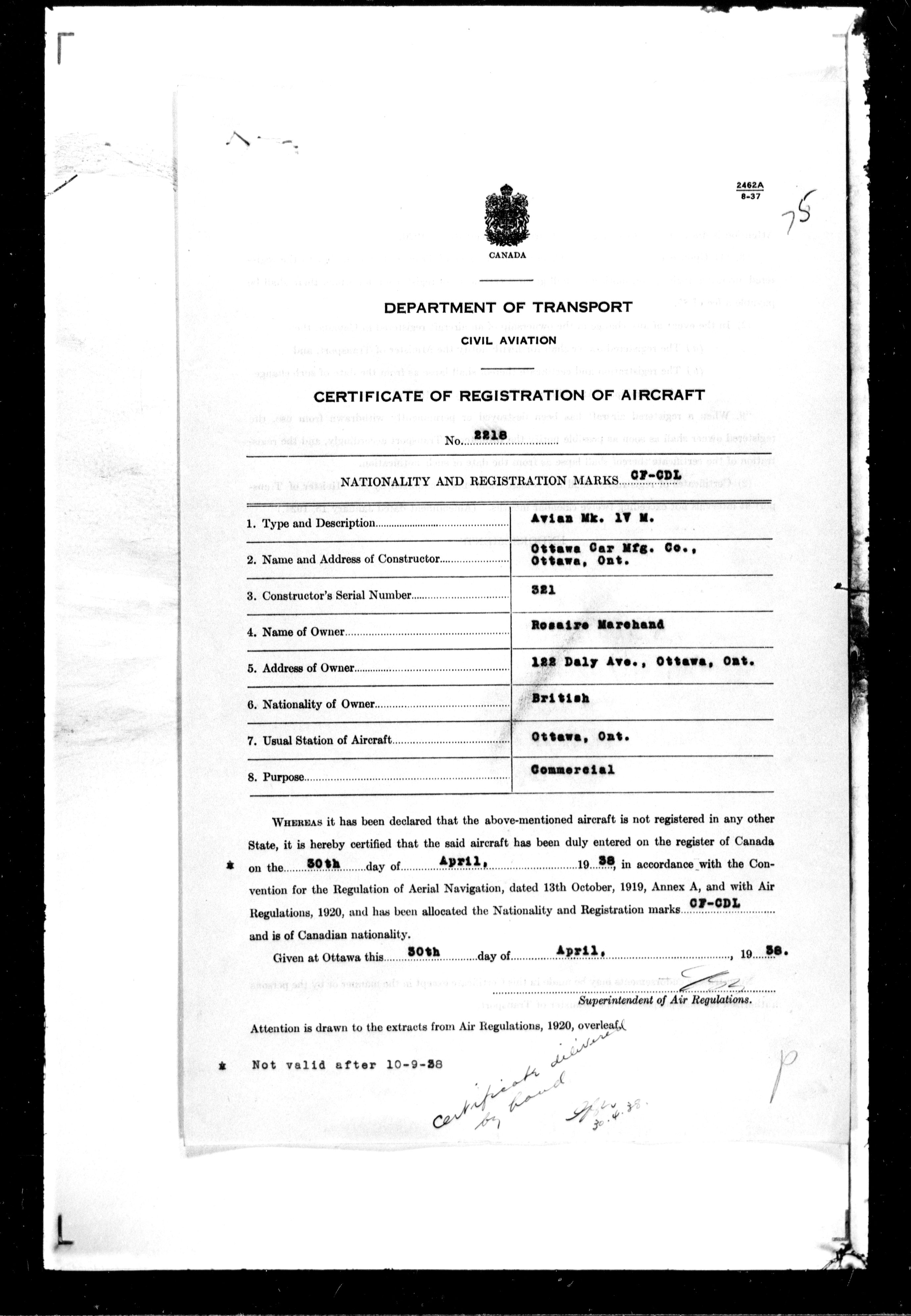 Department of Transport : Civil aircraft registration, inspection and operation files, block 5008, 1920-1986 - 7482