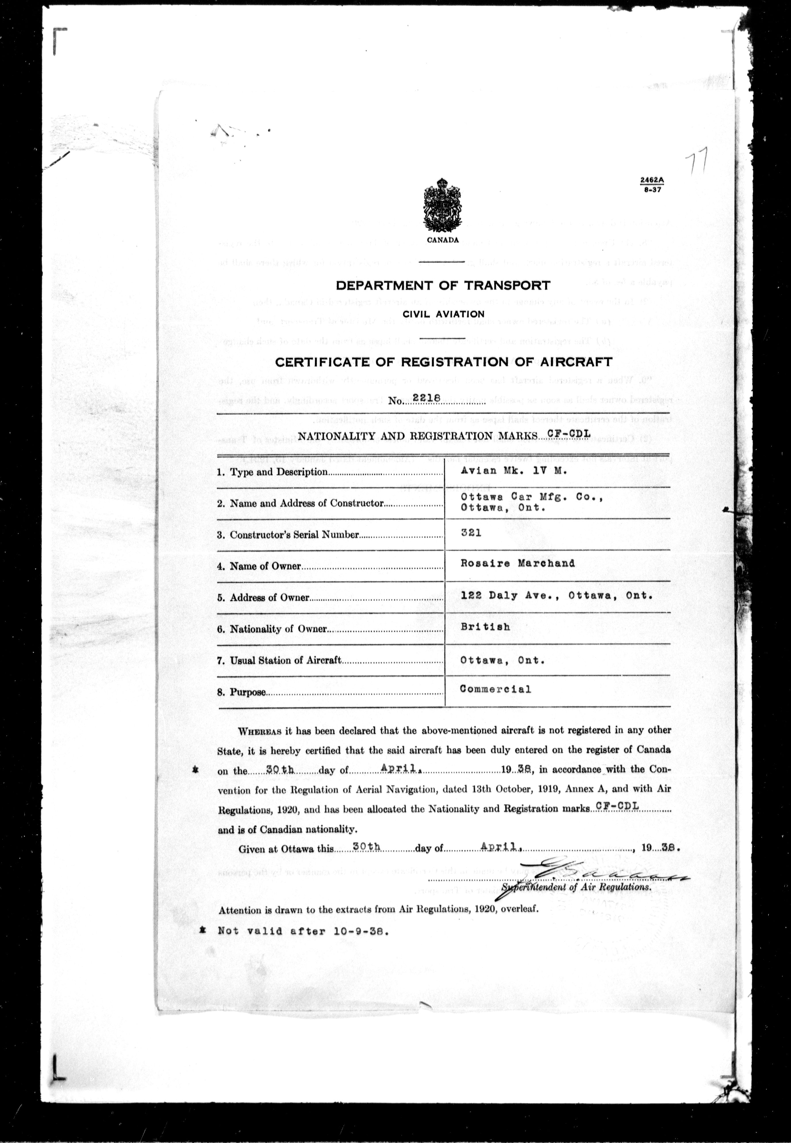 Department of Transport : Civil aircraft registration, inspection and operation files, block 5008, 1920-1986 - 7482