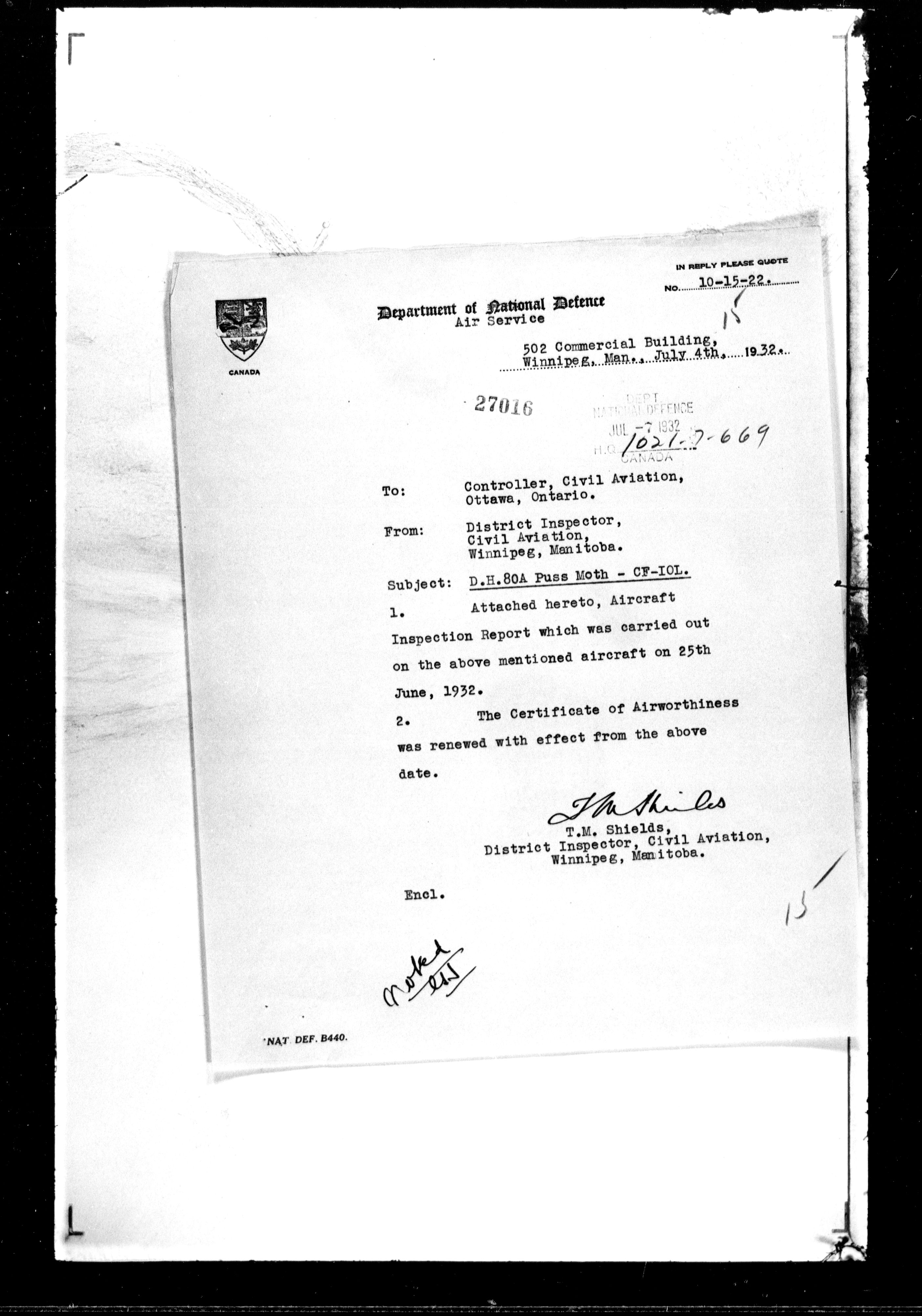 Department of Transport : Civil aircraft registration, inspection and operation files, block 5008, 1920-1986 - 7483