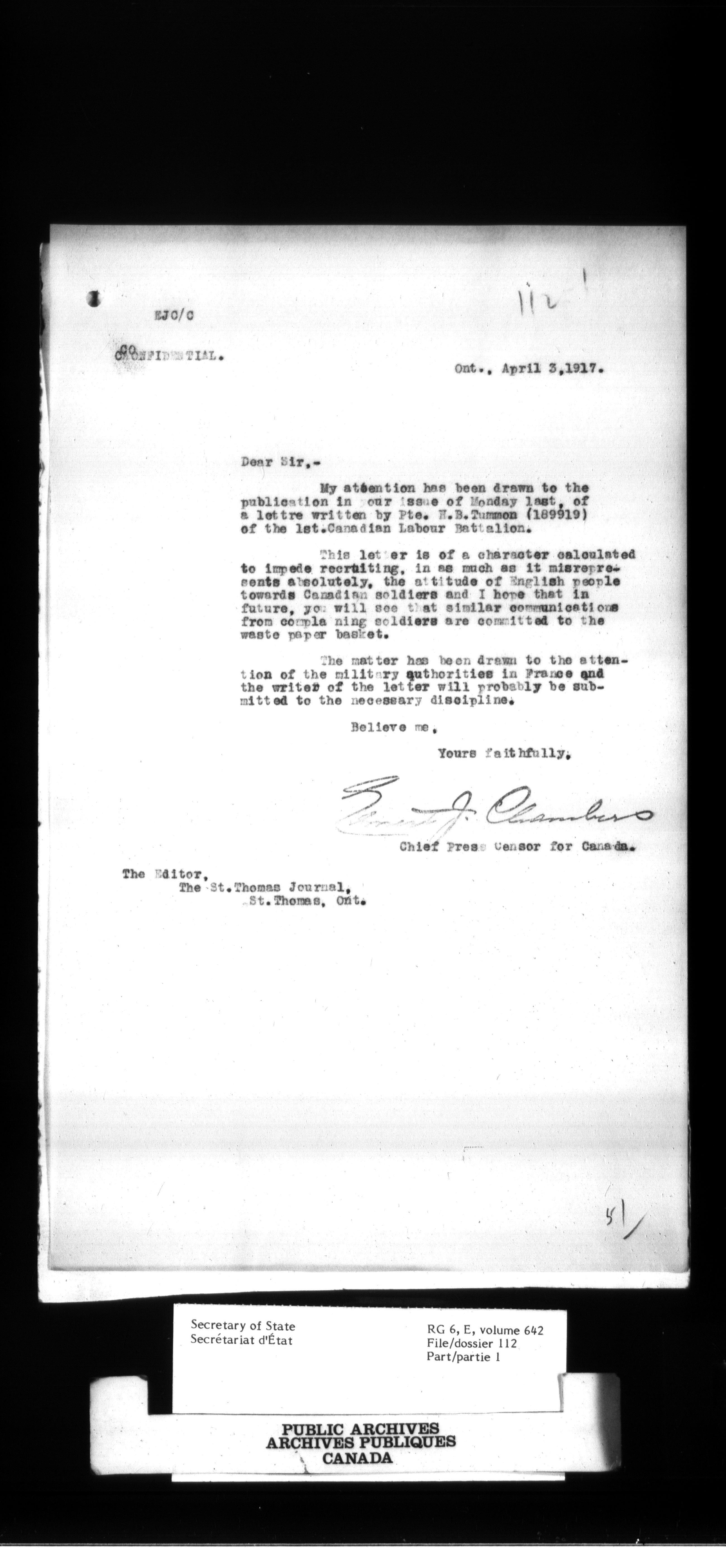 Secretary of State : Chief Press Censor : T-749