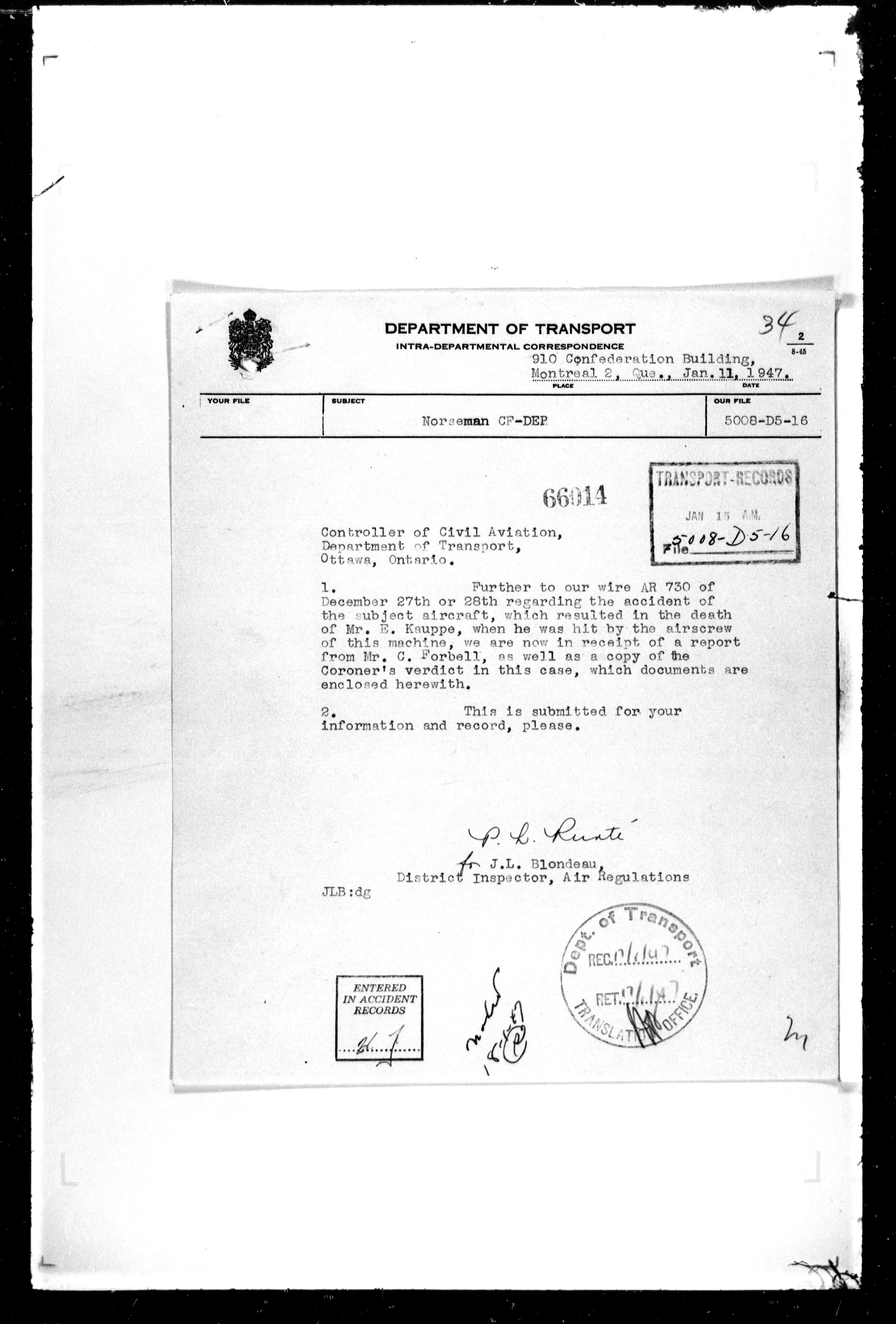 Department of Transport : Civil aircraft registration, inspection and operation files, block 5008, 1920-1986 - 7491