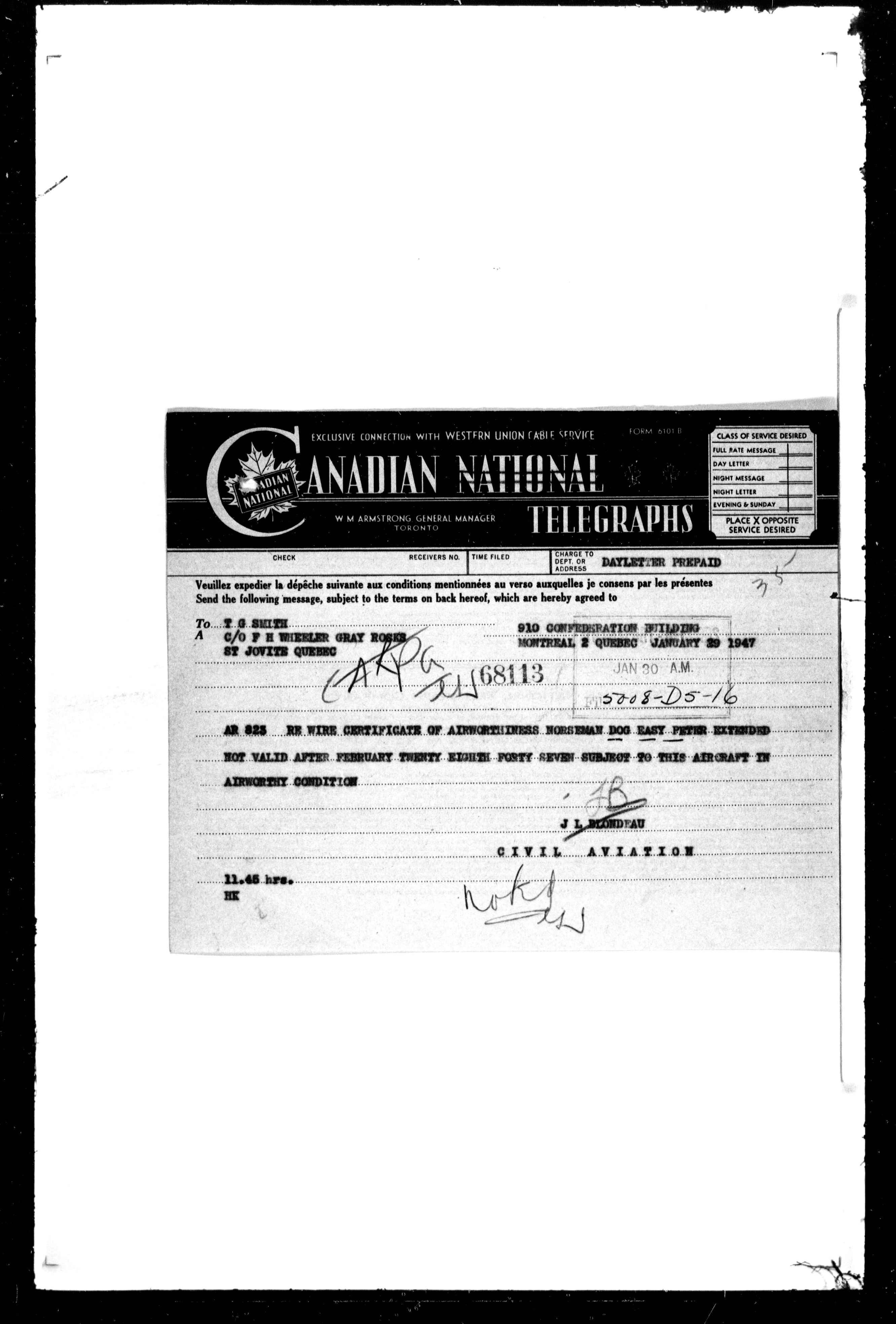 Department of Transport : Civil aircraft registration, inspection and operation files, block 5008, 1920-1986 - 7491