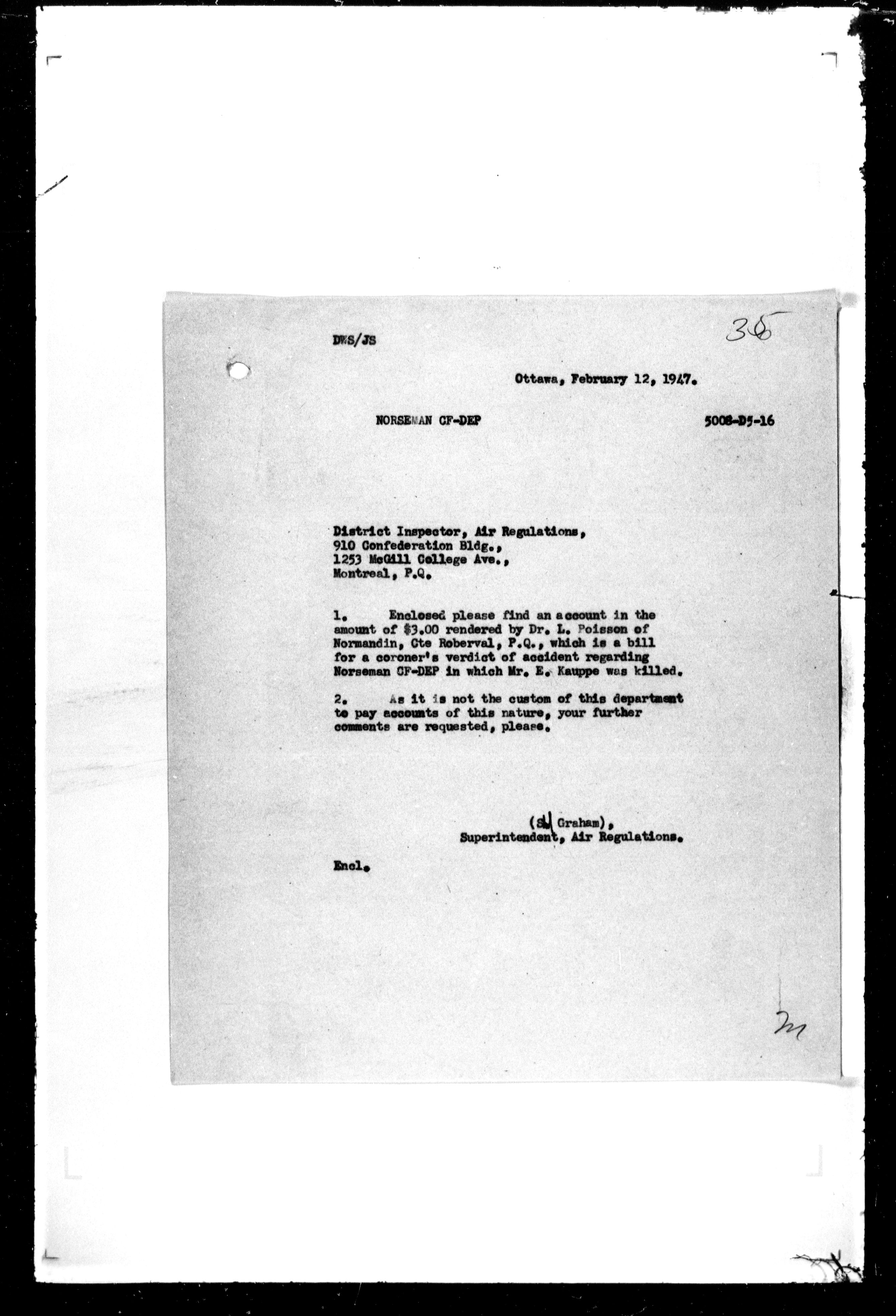 Department of Transport : Civil aircraft registration, inspection and operation files, block 5008, 1920-1986 - 7491