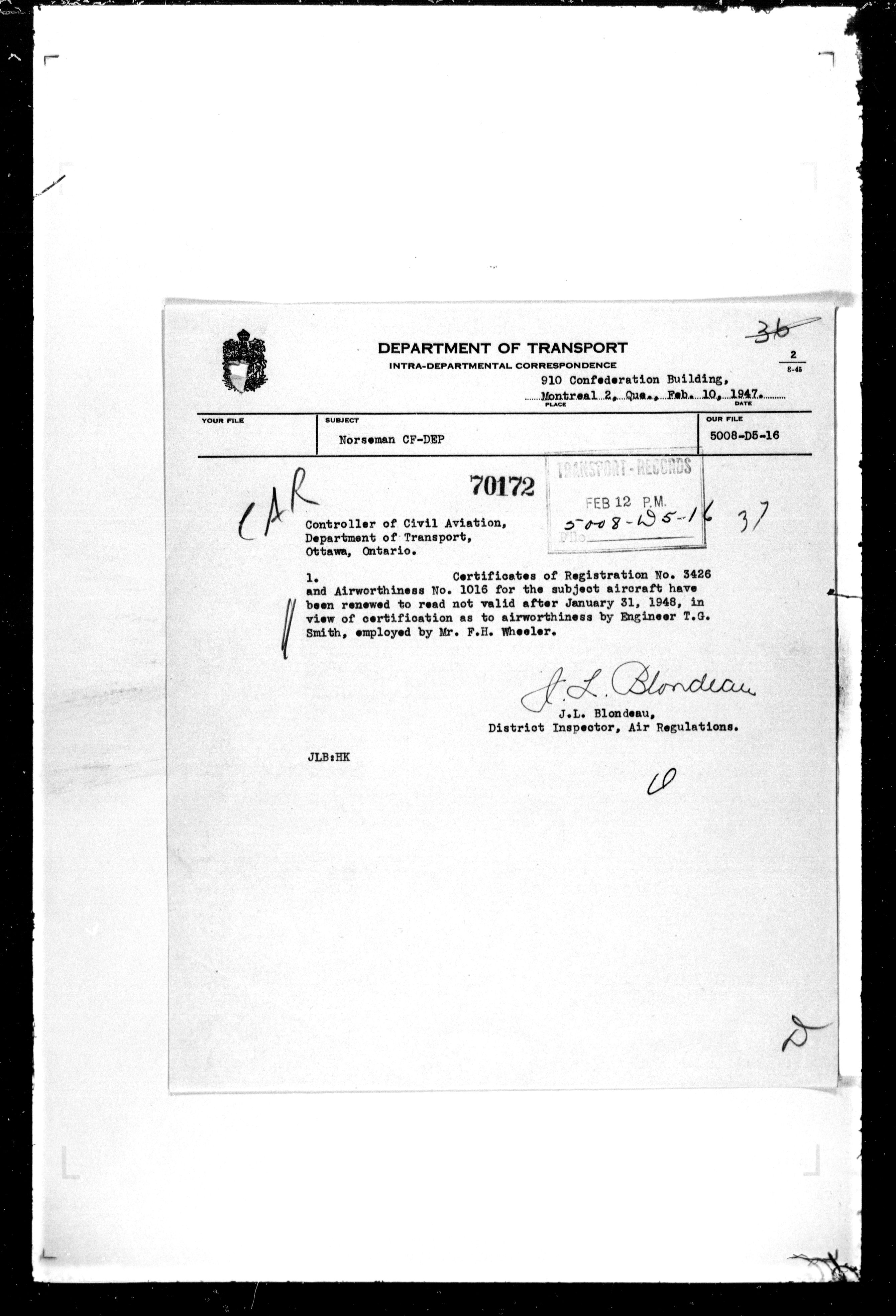 Department of Transport : Civil aircraft registration, inspection and operation files, block 5008, 1920-1986 - 7491