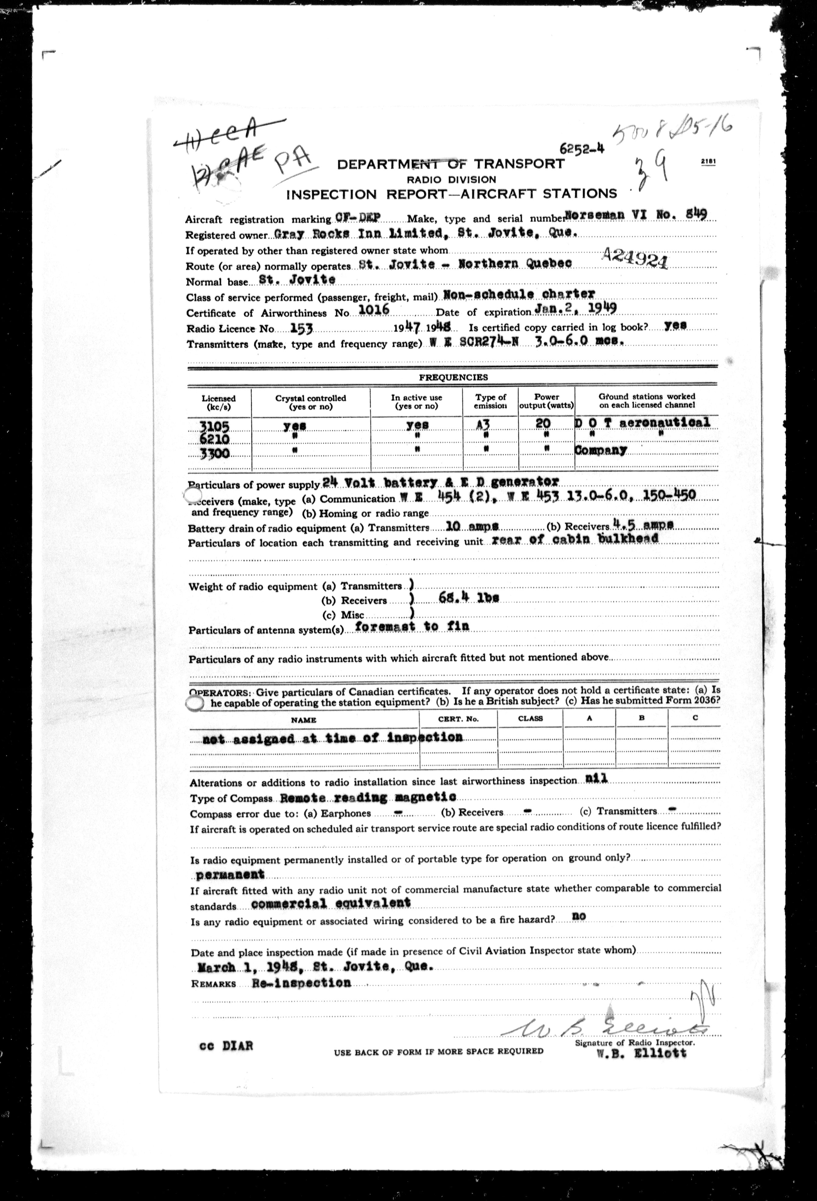 Department of Transport : Civil aircraft registration, inspection and operation files, 1920-1986 : T-7491