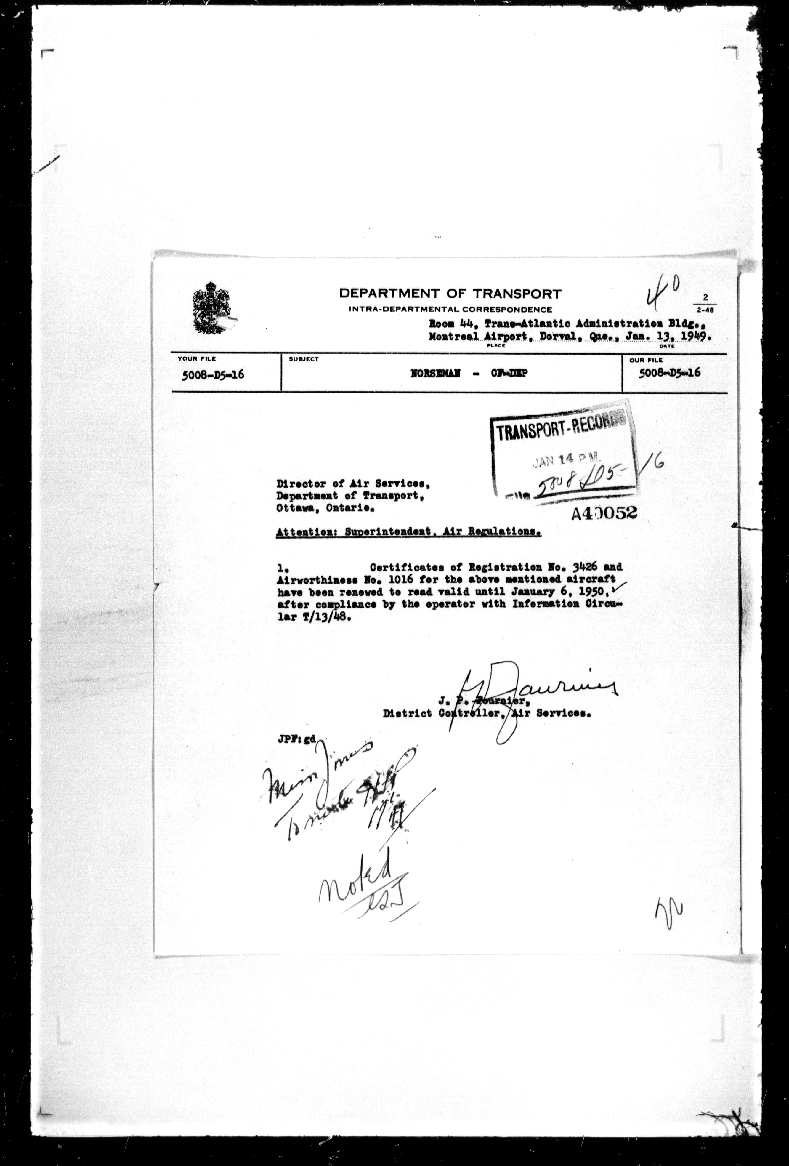Department of Transport : Civil aircraft registration, inspection and operation files, block 5008, 1920-1986 - 7491
